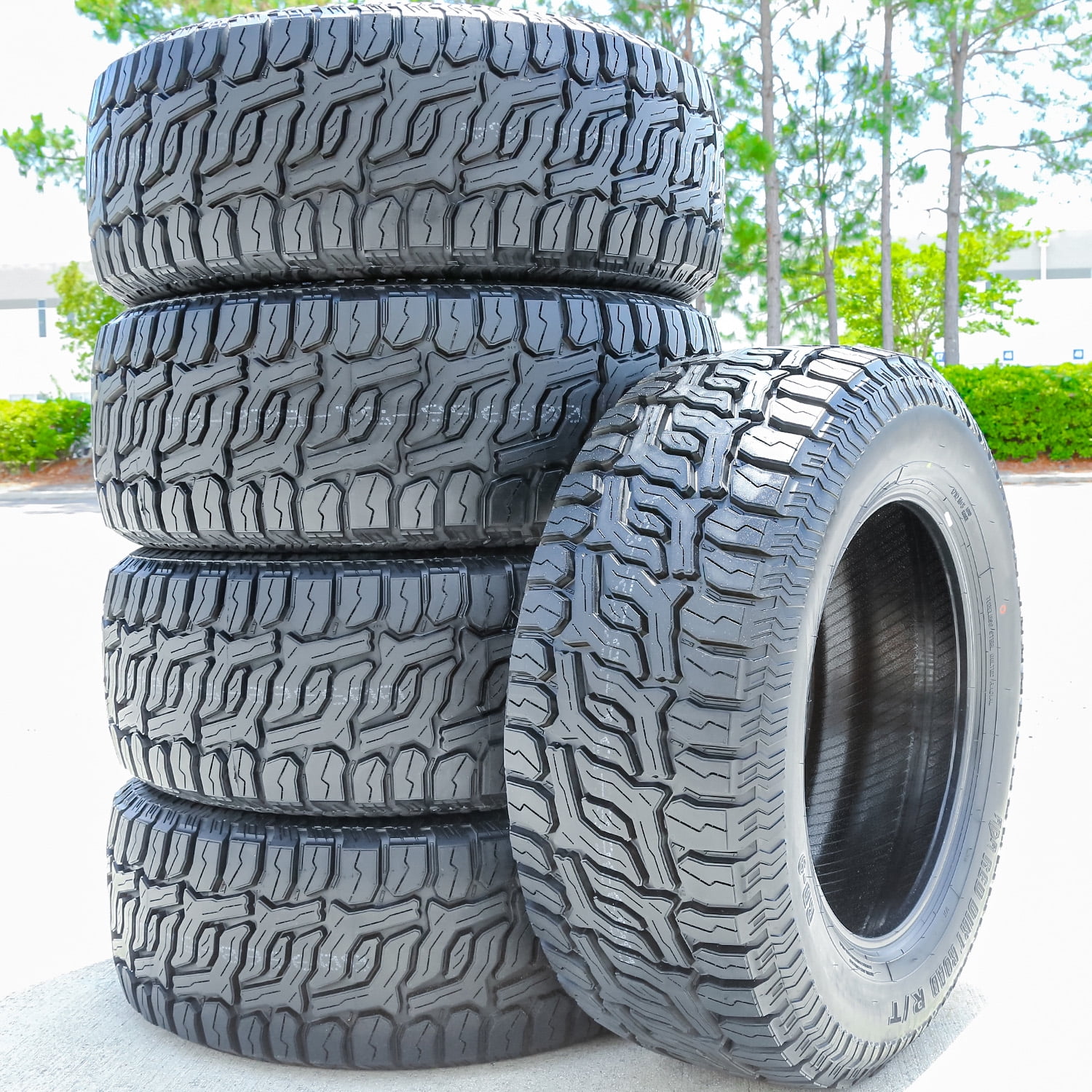 $175.43Red Dirt Road RD-9 R/T OVERVIEW The Red Dirt Road RD-9 R/T is a rugged terrain, all season tire made for light trucks. The model offers excellent rugged terrain traction. The aggressive tread design and the special silica compound improve the tire’s performance on hard, rocky, and uneven terrains. The special tread elements firmly grip the surface with extra biting edges, maintaining forward motion at all times. These elements increase the tire’s off-road performance. At the same time, the self-cleaning nature keeps the footprint clean by dispersing mud, dirt, and rocks stuck between the tread elements and also resists stone retention. The aggressive tread pattern and the ideal tread design maintain close surface contact at all times. This improves the tire’s steering responsiveness and driving stability. The steering response time is faster and more precise to the driver’s commands, while the structure is secured against driving pressure. The wide shoulder blocks and their close contact with the driving surface enhance cornering and maneuvering. This combination gives the driver full control over the vehicle. The reinforced internal structure and the durable rubber compound maintain the optimal tire shape under load and driving pressure. The strengthened structure increases the tire’s load-carrying ability. This structure does not allow the tire to deform under load and driving pressure, making it perfect for heavy-duty performance. On the other hand, the special silica compound protects the tire during the off-road ride. This compound prevents cuts, tearing, and chipping along the tread area and offers a safe driving experience. The Red Dirt Road RD-9 R/T enhances its year-round performance. The aggressive tread design and the all season compound increase the tire’s dry, wet, and winter-weather grip. In this manner, the tread pattern follows the surface in all conditions, while the all season compound keeps the rubber flexible in changing temperatures. These elements significantly upgrade the tire’s all weather traction. Manufacturers recommend changing tires every 10 years. As long as tires are properly stored before they are sold, the year of their manufacture will not shorten their service life.