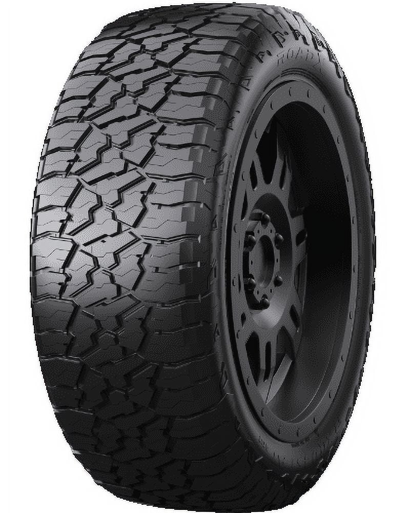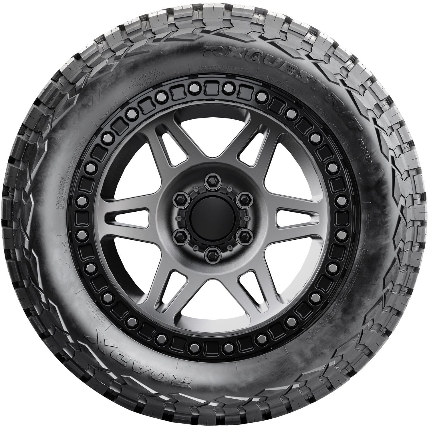 $187.47RoadX Rxquest R/T OVERVIEW The RoadX Rxquest R/T is a rugged terrain, all weather tire designed for light trucks and SUVs. RoadX offers a 45,000 mile treadwear warranty. The tire promotes exceptional rugged terrain performance. The tire offers better versatile terrain traction thanks to its optimized footprint. The staggered blocks and the high void ratio enable the tire to enhance its soft, loose, and uneven terrain, as well as on-road performance. These elements allow the tire to boost its consistent forward motion on various surfaces, while also keeping the footprint clean. As a result, mud, snow, and rocks are eliminated from between the tread elements. Stone retention is avoided in this manner as well, protecting the tire’s casing. The tire provides true year-round traction. The tire compound and the tread design improve dry, wet, and winter-weather grip. The compound elements optimize rubber flexibility in versatile temperatures, from the heat of summer to cold winter conditions. The tread elements firmly grip the road with extra biting edges, promoting safer year-round traction. The optimal groove placement avoids on-road hydroplaning. They disperse water and slush from the footprint, effectively upgrading wet-weather driving safety. Better controllability is guaranteed as well. The stable footprint’s surface contact improves its steering responsiveness and driving stability. This offers excellent steering response time and accuracy to the driver’s commands, while the structure is secured against driving pressure. The big shoulder blocks provide extra biting edges, upgrading its cornering and maneuvering capability. This combination guarantees the driver’s better control over the vehicle. The RoadX Rxquest R/T guarantees extended service life. The special compound blend is wear-resistant. In other words, it slows the tread wear rate down significantly and protects against patchy tread wear. Other than this, the tire also evenly distributes the driving pressure across the tread area, which prevents irregular wear patterns from forming across the tread. The longevity of the even tread ensures an extended tire life and usability. The self-cleaning ability also helps by minimizing the chance of tread damage. All weather tires receive the three mountain peak and snowflake (3PMS) symbol for their exceptional winter weather performance. They are all season tires with extra winter weather grip, in order to guarantee safer year-round durability. This ensures their true and secure driving ability throughout the year. Not all tire sizes are suitable for all vehicle types. Please refer to the item specifications for accurate information about vehicle type fitment for this particular size. Manufacturers recommend changing tires every 10 years. As long as tires are properly stored before they are sold, the year of their manufacture will not shorten their service life.