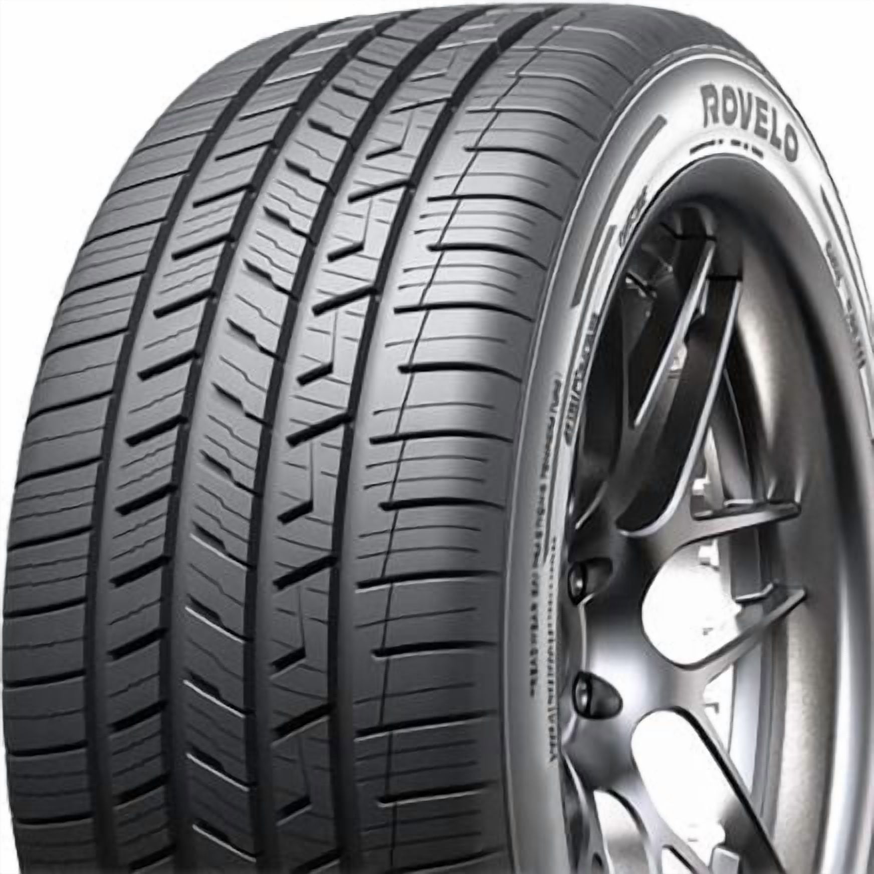 $66.21Rovelo Instinct UHP AS HP01 OVERVIEW The Rovelo Instinct UHP AS HP01 is a performance and high performance, all season tire made for passenger vehicles and SUVs. Rovelo offers a 50,000 mile treadwear warranty with this model. The tire is able to handle versatile weather conditions. The ideal tread design, with the detailed siping pattern, and the all season compound work together to upgrade the dry, wet, and winter-weather performance. The durable compound elements and the detailed siping placement increase the tire’s surface traction to ensure a safe year-round drive. The compound elements optimize the rubber’s flexibility throughout the year, in various temperatures. The tread design’s siping placement increases the number of biting edges that grip the road, which boosts the surface traction. The tread’s ideal groove placement avoids hydroplaning in wet-weather situations. High speed controllability and maneuvering are promoted with this model. The model’s steering responsiveness and driving stability are guaranteed as a result. On the other hand, the ideal tread elements effectively upgrade cornering and braking. These elements ensure the tire’s exceptional driving safety levels, resulting in a safer driving experience, even at higher speeds. High speed performance is also guaranteed. The optimized tread design works with the durable compound, in order to ease the pressure off the footprint. This effectively avoids pressure and heat accumulation along the tread area. As a result, the tire can safely perform at its utmost high speed capability, promoting a secure driving experience. This tread design and its constant surface contact ensure a quiet performance. The footprint features a variable pitch pattern, which helps keep road noise low. This pattern generates a special sound frequency while the tires are in motion. As a result, the tire negates sound waves before they can reach the vehicle’s cabin and ruin the passengers’ driving enjoyment. Better comfort provides an enjoyable driving experience. The Rovelo Instinct UHP AS HP01 boosts its service life and usability. The ideal tread design works with the durable compound to effectively provide slow and even wear. Footprint stability maintains surface contact and helps prevent tread flexing. As a result, the tire avoids irregular wear by preventing pressure accumulation along the tread area. On the other hand, strong compound elements offer wear resistance, decreasing the treadwear rate. The combination greatly boosts the tire’s overall tread life length. Manufacturers recommend changing tires every 10 years. As long as tires are properly stored before they are sold, the year of their manufacture will not shorten their service life.