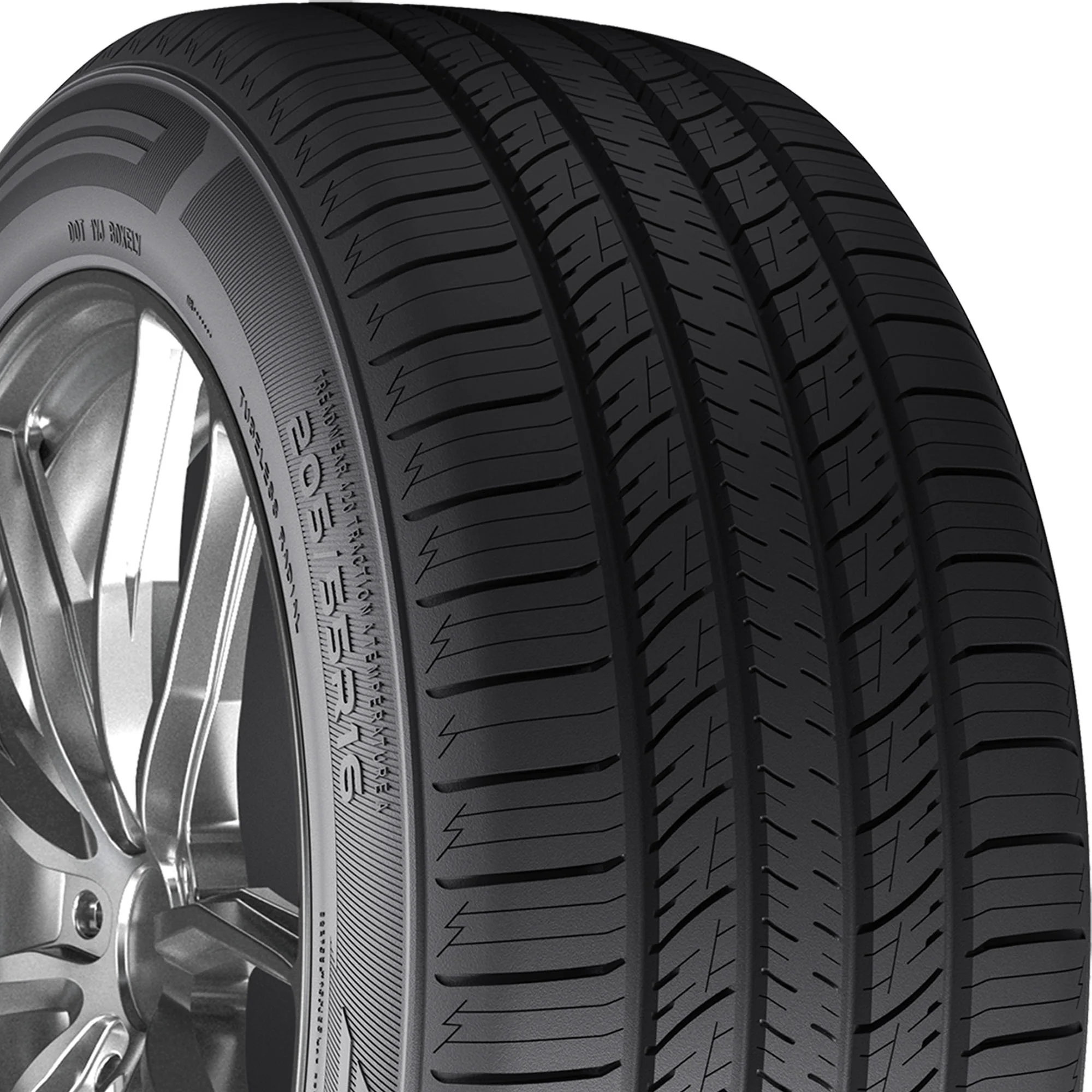 $71.37Rovelo Instinct UHP AS HP01 OVERVIEW The Rovelo Instinct UHP AS HP01 is a performance and high performance, all season tire made for passenger vehicles and SUVs. Rovelo offers a 50,000 mile treadwear warranty with this model. The tire is able to handle versatile weather conditions. The ideal tread design, with the detailed siping pattern, and the all season compound work together to upgrade the dry, wet, and winter-weather performance. The durable compound elements and the detailed siping placement increase the tire’s surface traction to ensure a safe year-round drive. The compound elements optimize the rubber’s flexibility throughout the year, in various temperatures. The tread design’s siping placement increases the number of biting edges that grip the road, which boosts the surface traction. The tread’s ideal groove placement avoids hydroplaning in wet-weather situations. High speed controllability and maneuvering are promoted with this model. The model’s steering responsiveness and driving stability are guaranteed as a result. On the other hand, the ideal tread elements effectively upgrade cornering and braking. These elements ensure the tire’s exceptional driving safety levels, resulting in a safer driving experience, even at higher speeds. High speed performance is also guaranteed. The optimized tread design works with the durable compound, in order to ease the pressure off the footprint. This effectively avoids pressure and heat accumulation along the tread area. As a result, the tire can safely perform at its utmost high speed capability, promoting a secure driving experience. This tread design and its constant surface contact ensure a quiet performance. The footprint features a variable pitch pattern, which helps keep road noise low. This pattern generates a special sound frequency while the tires are in motion. As a result, the tire negates sound waves before they can reach the vehicle’s cabin and ruin the passengers’ driving enjoyment. Better comfort provides an enjoyable driving experience. The Rovelo Instinct UHP AS HP01 boosts its service life and usability. The ideal tread design works with the durable compound to effectively provide slow and even wear. Footprint stability maintains surface contact and helps prevent tread flexing. As a result, the tire avoids irregular wear by preventing pressure accumulation along the tread area. On the other hand, strong compound elements offer wear resistance, decreasing the treadwear rate. The combination greatly boosts the tire’s overall tread life length. Manufacturers recommend changing tires every 10 years. As long as tires are properly stored before they are sold, the year of their manufacture will not shorten their service life.