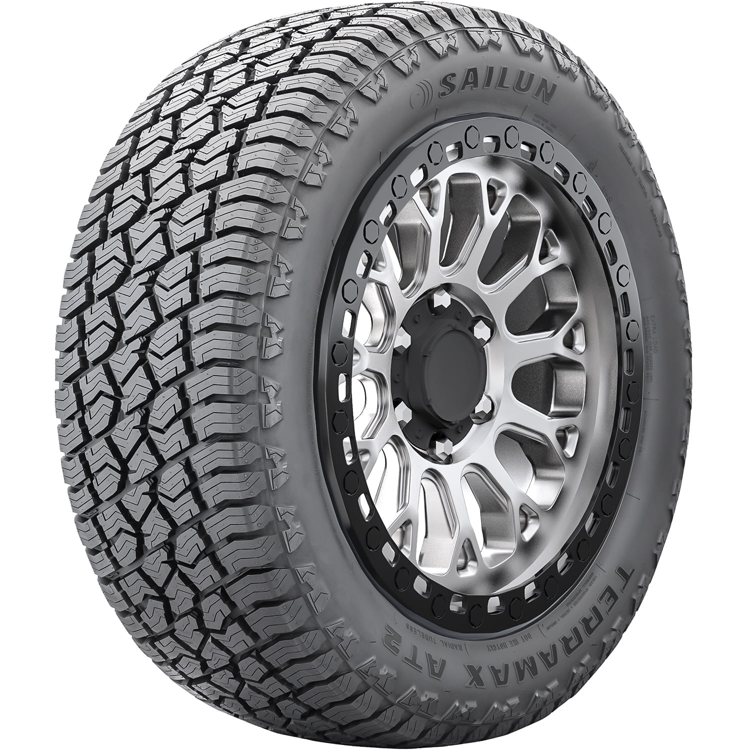 $162.97Sailun Terramax AT2 The Sailun Terramax AT2 elevates your driving experience with superior traction on/off-road and is built with purpose for SUVs, pickup trucks, and vans. Its aggressive open shoulder tread design is 3PMS certified and expels water, snow, slush, and mud for optimum traction. A center rib ensures superior ride stability and control, while deep tread sipes create additional tread surface and increase traction. This design ensures your peace of mind with exceptional handling, stability, and a quiet ride.
