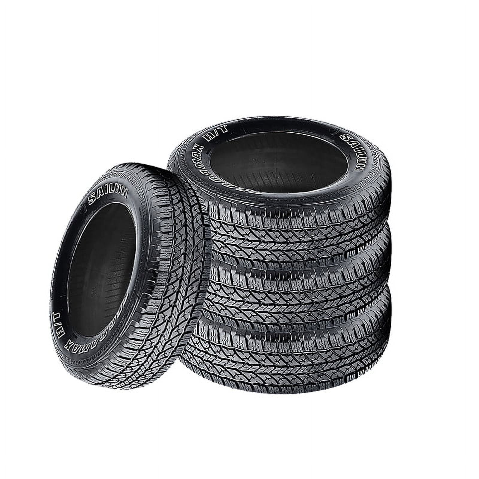 $113.18Sailun Terramax HLT LT265/75R16 123R E OVERVIEW The Sailun Terramax HLT is a great value in an all-season tire for light trucks and SUVs. The Terramax HLT features circumferential and angled grooves to clear away standing water, with a durable rubber compound, open shoulders for enhanced cornering, and a tread pitch that’s computer-tuned to help keep road noise down. Additionally, the Terramax HLT is protected by a 50,000 mile limited manufacturer tread life warranty.