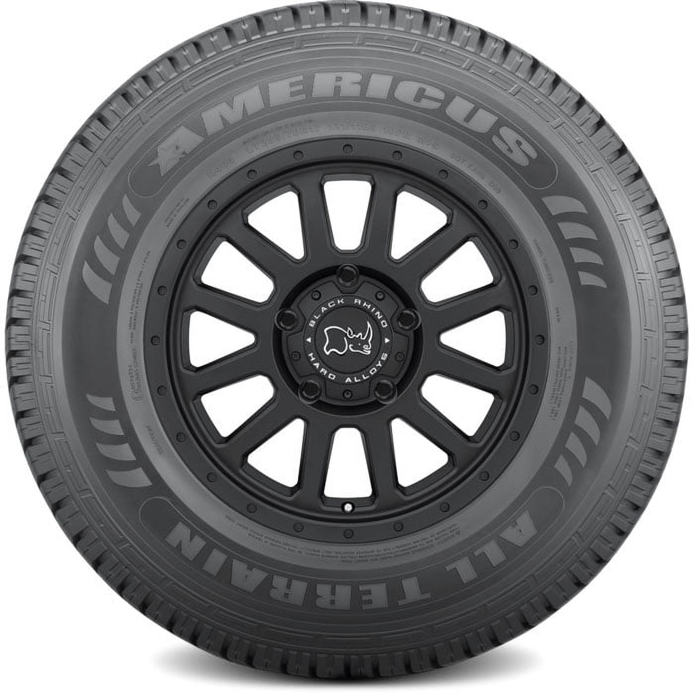 $256.76The Americus Rugged A/TR is a tough and versatile all-terrain tire that offers the perfect combination of off-road performance and on-highway handling. It features an advanced 3D sipes design, chunky and rigid center blocks, and oversized shoulder lugs that can be fitted with studs for severe winter conditions, making it eligible for the 3 Peak Mountain Snowflake designation. The Rugged A/TR comes with a 50,000 mile limited manufacturer’s tread life warranty.