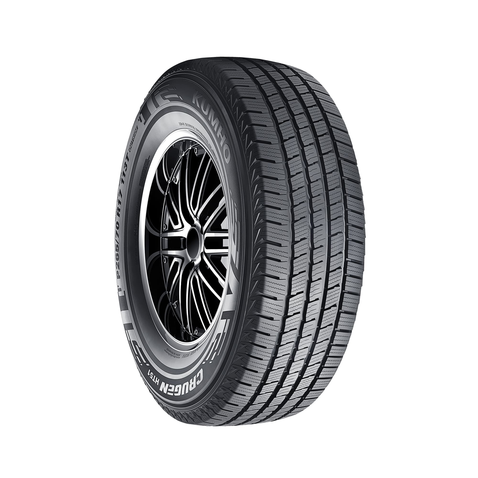 $263.18Kumho’s Crugen HT51 is an all-season tire that’s designed for use on light trucks and SUVs and features a stiff center block that improves traction and handling performance. Backed by a 70,000 mile limited manufacturer tread life warranty for P-metric sizes and a 45,000 mile limited manufacturer tread life warranty for LT-metric sizes, the Crugen HT51’s 3D siping bites into the road to boost handling and traction on snowy roads while also reducing uneven wear for a longer tread life.
