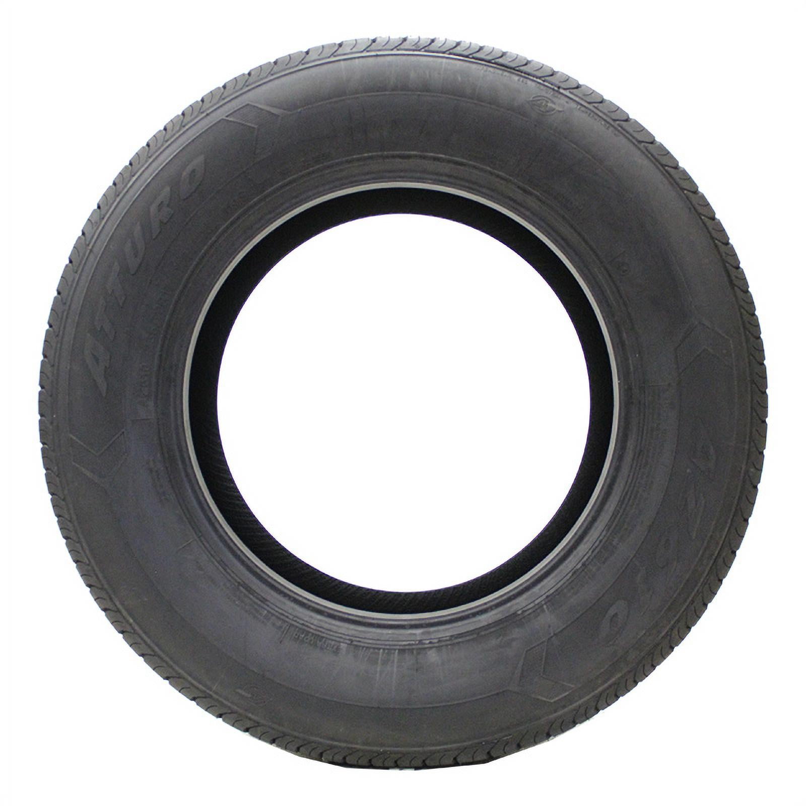 $331.04Atturo AZ610 OVERVIEW The Atturo AZ610 is a touring all season tire manufactured for crossover vehicles and SUVs. Atturo offers a 60,000 mile warranty with this model. The tire promotes first-rate all weather traction. The special computer optimized tread pattern is similar to the design of highway terrain tires, however, it combines their excellent road grip with high levels of comfort. The ribbed tread design increases the dry, wet and winter weather road gripping ability. The wide circumferential grooves also manage to prevent hydroplaning by eliminating water and slush from below the tire’s footprint. The combination of the enhanced hydroplaning resistance and improved traction ensures a safer year round driving experience. The specialized tread design manages to improve the tire’s controllability in all weather. The computer optimized tread keeps its road contact at all times, increasing the model’s controllability. In other words, it ensures a quick and precise steering response to the driver’s commands, while also stabilizing the tire’s structure against the driving pressure affecting it. The tread also features a rounded shoulder area that upgrades the cornering ability and power. It heightens the number of biting edges that firmly grip the road surface in such situations and guarantees a secure cornering and maneuvering capability. The special computer designed tread pattern with the circumferential ribs and rounded shoulders keep the tire close to the road surface during the drive. This manages to decrease the road vibrations felt in the vehicle’s cabin as the tire maintains its road contact at all times. The result is a comfortable driving experience in all weather conditions, as the road vibrations do not disturb the drive’s comfort levels. The AZ610 is made with a rim protector. Its sidewalls are designed in a manner that they guard the rims from accidental curb damage during the drive. Manufacturers recommend changing tires every 10 years. As long as tires are properly stored before they are sold, the year of their manufacture will not shorten their service life.