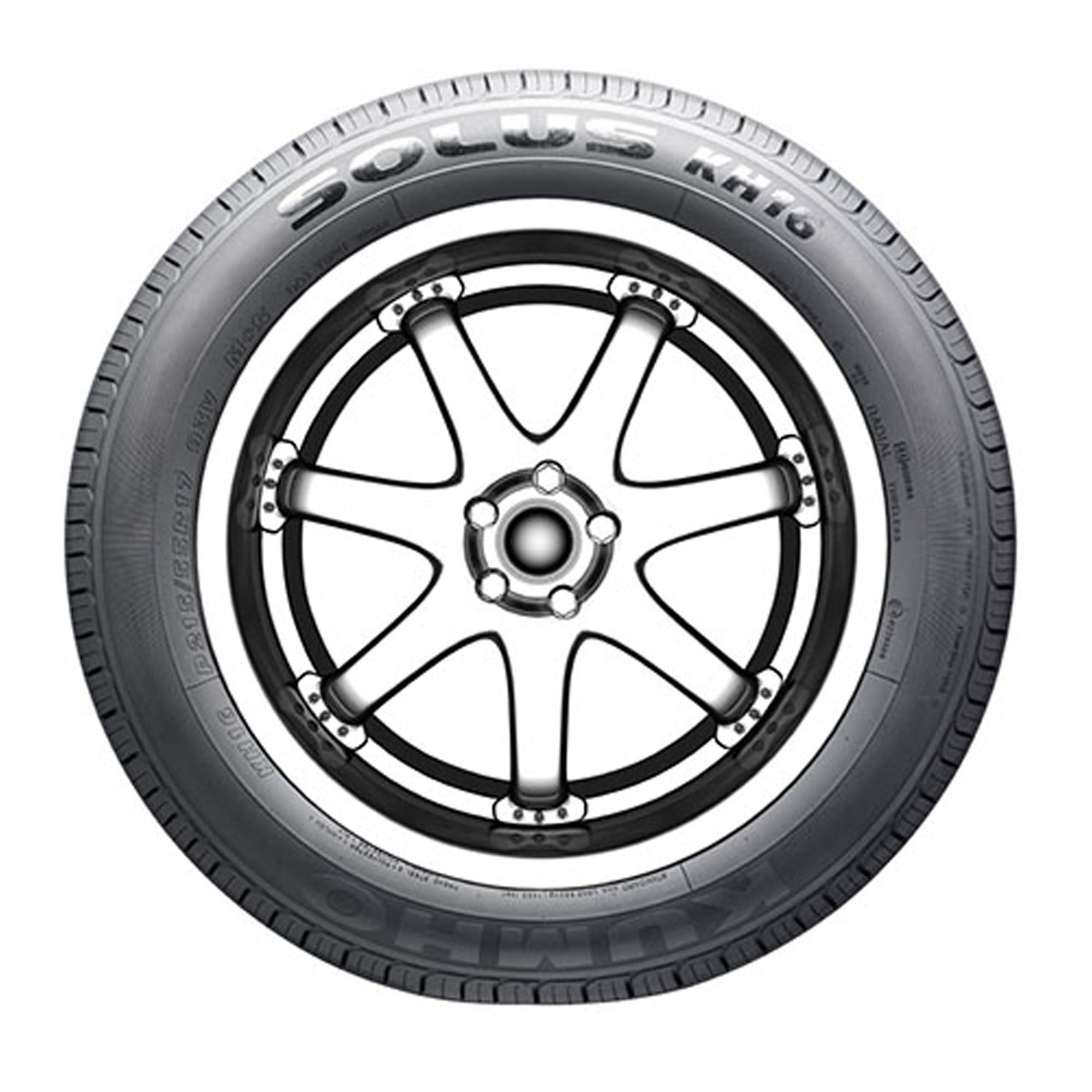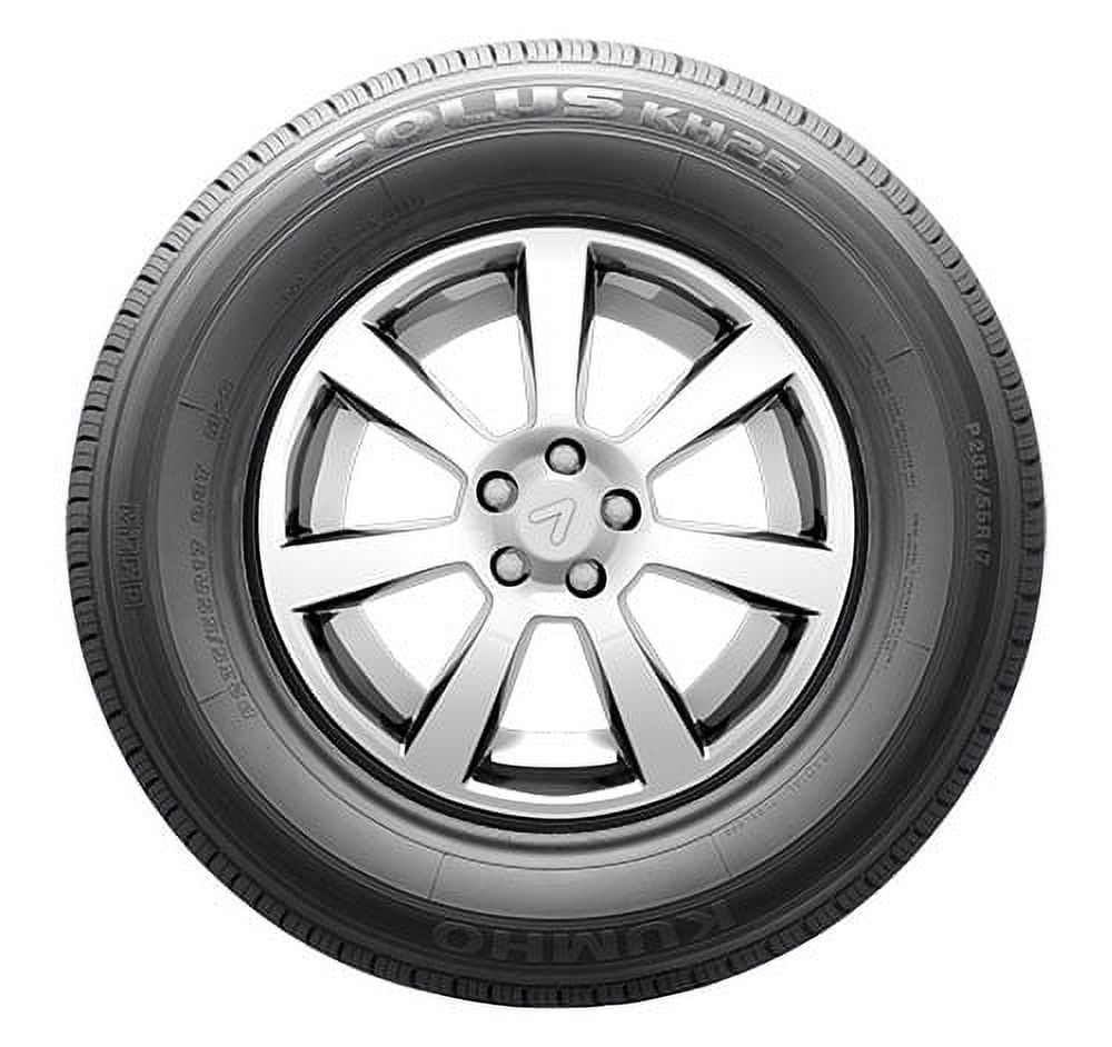 $353.67The Kumho Solus KH25 is a high performance touring tire specially developed for drivers looking for all-season traction, quick steering response, and ride comfort. Ideal for sport sedans and mid-level family vehicles, the Kumho Solus KH25 is the best choice for a family car. It can be found in today™s most popular family cars like the Ford Fiesta, Hyundai Veloster, and Hyundai Sonata. It features a silica-enhanced tread compound molded into a symmetric tread pattern to provide all-season traction. The symmetric tread design consists of full-depth circumferential grooves which enhance traction in both wet and snow-covered road surfaces, as well as variable-pitch lateral grooves which reduce noise. This means you get wet weather traction while enjoying a quiet ride. The internal structure consists of twin steel belts reinforced by spirally wrapped nylon for an enhanced stability and durability even when driving at high speeds. To get the most out of the Kumho Solus KH25, it is recommended to use them in sets of four.
