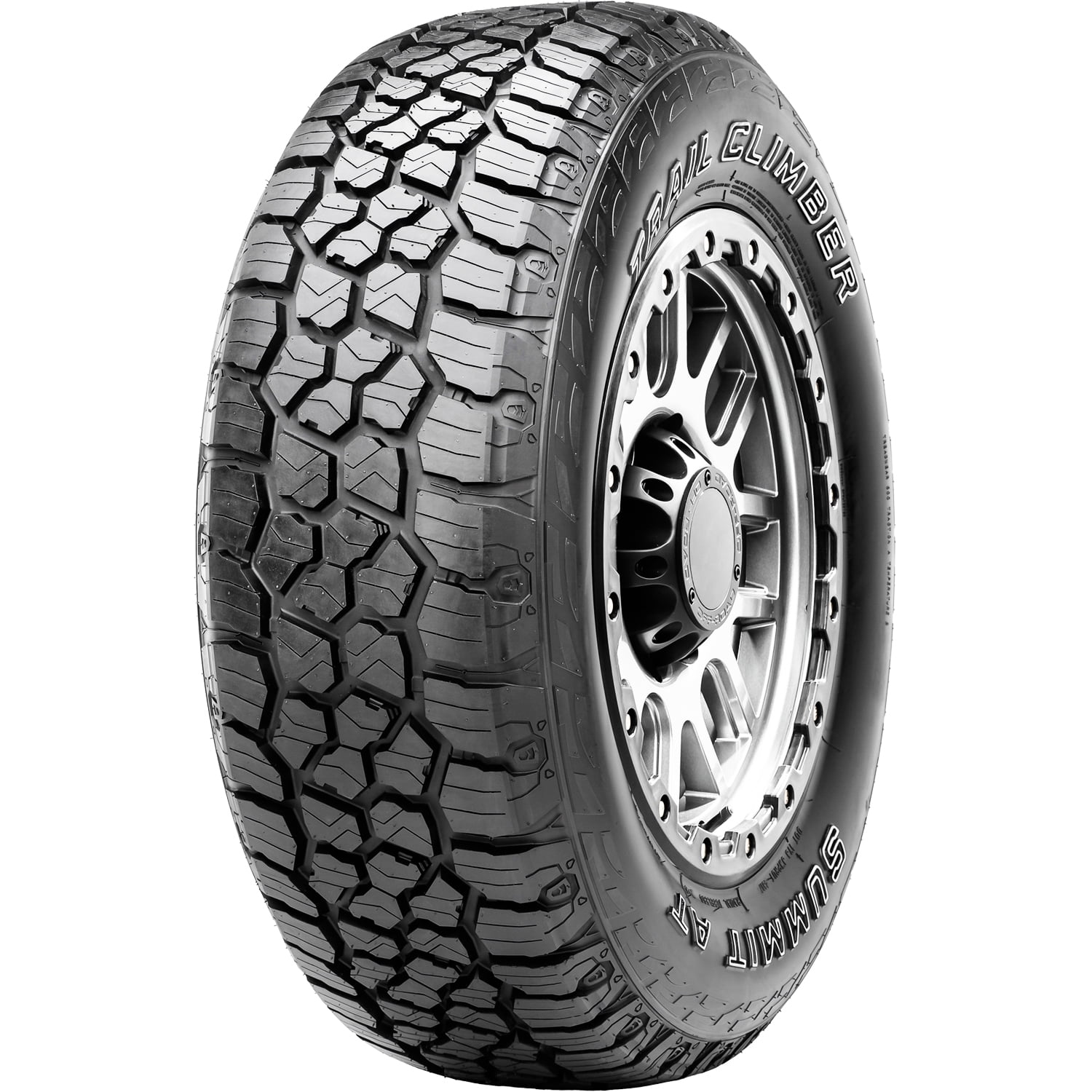 $117.30Summit Trail Climber AT LT265/70R17 121/118S E OVERVIEW The Trail Climber AT is at home on road and off road. With an aggressive tread pattern and rugged sidewall the Trail Climber AT delivers exceptional traction on all road conditions. Along with strength and durability it still delivers a smooth and quiet ride for cruising.