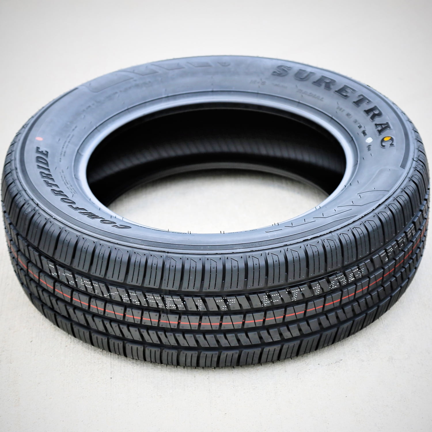 $85.98Suretrac Comfortride OVERVIEW The Suretrac Comfortride is a touring, all season tire made for passenger vehicles and SUVs. The tread pattern improves its controllability. The tread design closely follows the road, maintaining the tire’s constant contact to improve steering responsiveness and driving stability. In other words, the steering is faster and more precise in its response to the driver’s commands, while the structure is secured against the driving pressure affecting the model. The shoulder tread block pattern upgrades the cornering capability, while at the same time enhancing maneuvering. This model also enhances all weather performance. The tread design and the all season compound boost the dry, wet, and winter road grip. The asymmetric tread design closely follows the road surface all the time, while the compound maintains rubber flexibility throughout versatile temperatures. At the same time, deep circumferential grooves disperse water and slush from below the footprint, preventing hydroplaning. These elements work together and promote a safe driving performance throughout the year. The Suretrac Comfortride provides a quiet and comfortable driving experience. The asymmetric tread pattern, the durable compound, and their close road contact offer a noise- and vibration-free drive. This tread design channels airwaves through the footprint, without letting them come into contact with the tread elements. This avoids road noise from generating while the tires are in motion. On the other hand, the rubber compound and the close road contact absorb the shock of driving. As a result, they minimize the vibrations felt by the passengers. This combination provides an enjoyable driving performance. Manufacturers recommend changing tires every 10 years. As long as tires are properly stored before they are sold, the year of their manufacture will not shorten their service life.