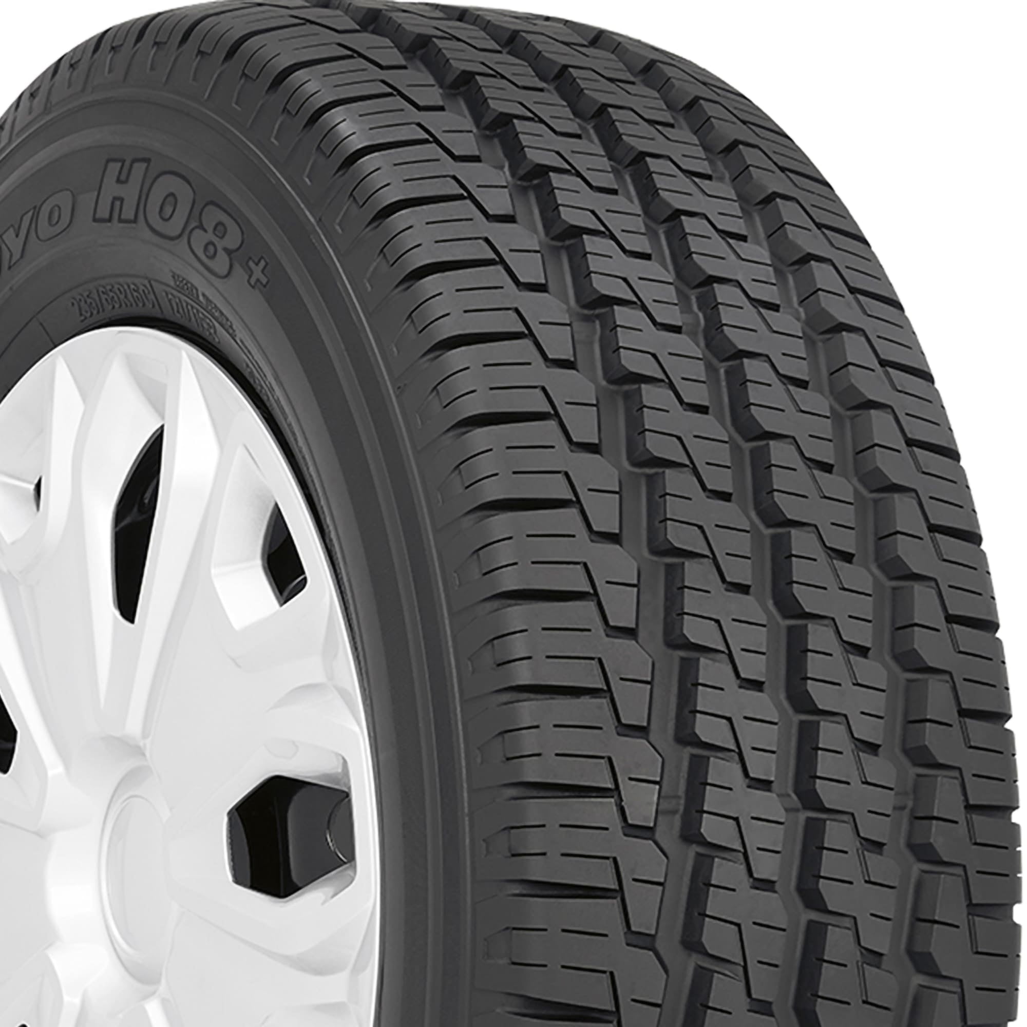 $166.77Toyo H08+ LT245/75R16 120/116S E OVERVIEW The Toyo H08+ is an all-season commercial van tire that’s built to withstand the demands that are placed on modern commercial vans. Featuring a commercial-grade construction, the H08+’s unique tread design enhances durability, and offers a long tread life for transportation, hauling, and commercial applications.