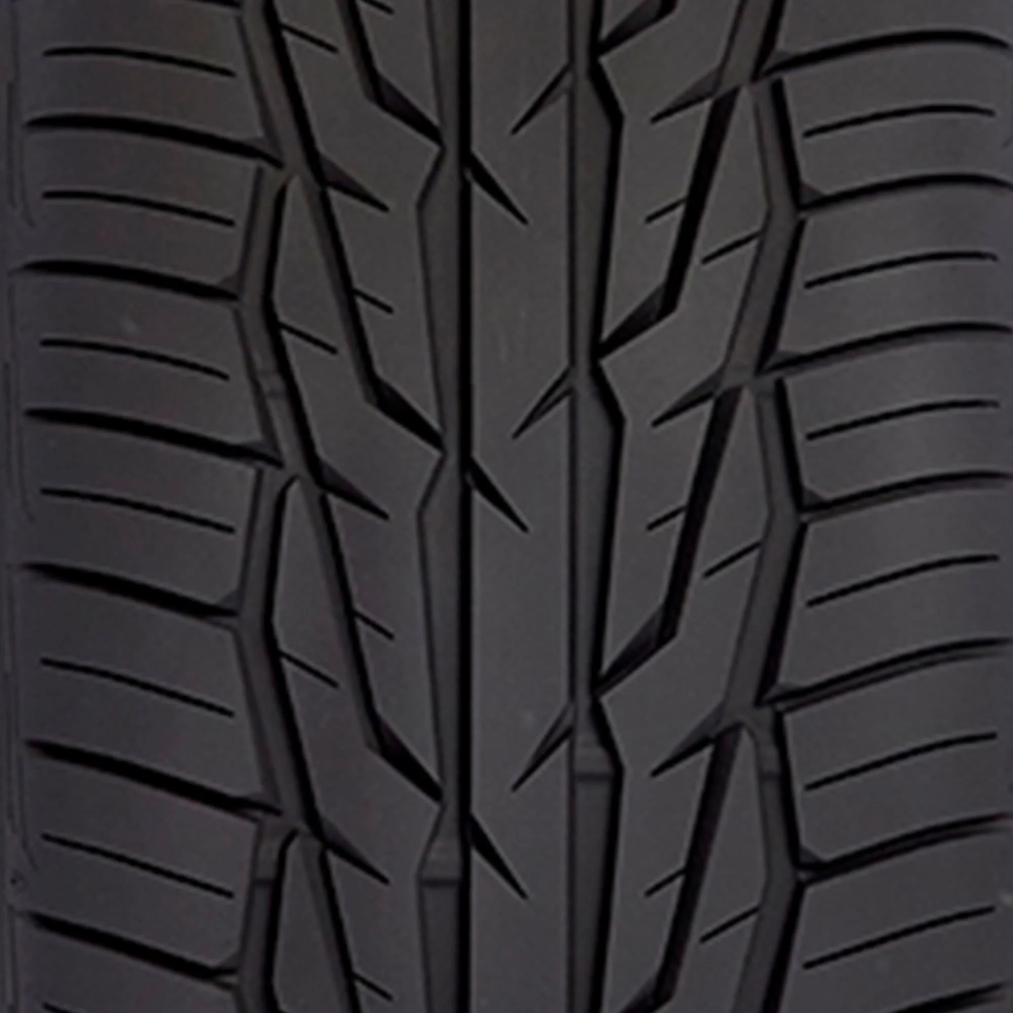 $111.76Toyo Extensa HP II FEATURES AND BENEFITS All weather traction Hydroplaning resistance Enhanced controllability Shorter braking distance Longer lasting tread life OVERVIEW The Toyo Extensa HP II is a performance and high performance, all season tire manufactured for passenger vehicles. Toyo offers a 45,000 mile warranty with this model. The tire promotes exceptional all weather traction. The silica-based tire compound maintains its flexibility in all weather, while the unidirectional tread design with the full depth multi-wave siping detail firmly grips the road surface in dry, wet and light winter weather. As a result, the tire can be used safely all year. The wide circumferential and interconnecting swooping grooves effectively disperse water from below the tire footprint to avoid hydroplaning situations. The model offers superb controllability. The shoulder tread block sequences maintain their road contact at all times which increases the steering responsiveness, the driving stability and the models cornering and maneuvering ability. The steering becomes quick and precise, while the tire is secured against the driving pressure affecting it. In this manner, the driver is able to confidently control the vehicle in all weather. The shoulder tread blocks also provide additional biting edges for cornering. They firmly grip the road during cornering and maneuvering which boosts the driving safety. The tires controllability allows it to shorten its braking distance. The single-cut and double-cut tapers of the design increase and optimize the tread block stiffness. As they are not able to shift during the drive, they are able to create friction when it is needed. During braking situations, this friction increases the braking power and allows the tire to stop shorter, providing a safer drive. The tread pattern of the Extensa HP II guarantees a longer lasting tread life. The full depth multi-wave siping detail enhances the tread life by preventing irregular wear patterns from forming across the tread area. The sipes evenly distribute the forces of acceleration, cornering and braking across the tread area, which lengthens the tires usability and tread life. This same siping detail lowers the road noise heard in the vehicles cabin. The siping detail eliminates the airwaves from between the tread blocks and prevents them from coming into contact with the tread elements, decreasing the pattern noise heard while the tires are in motion.