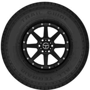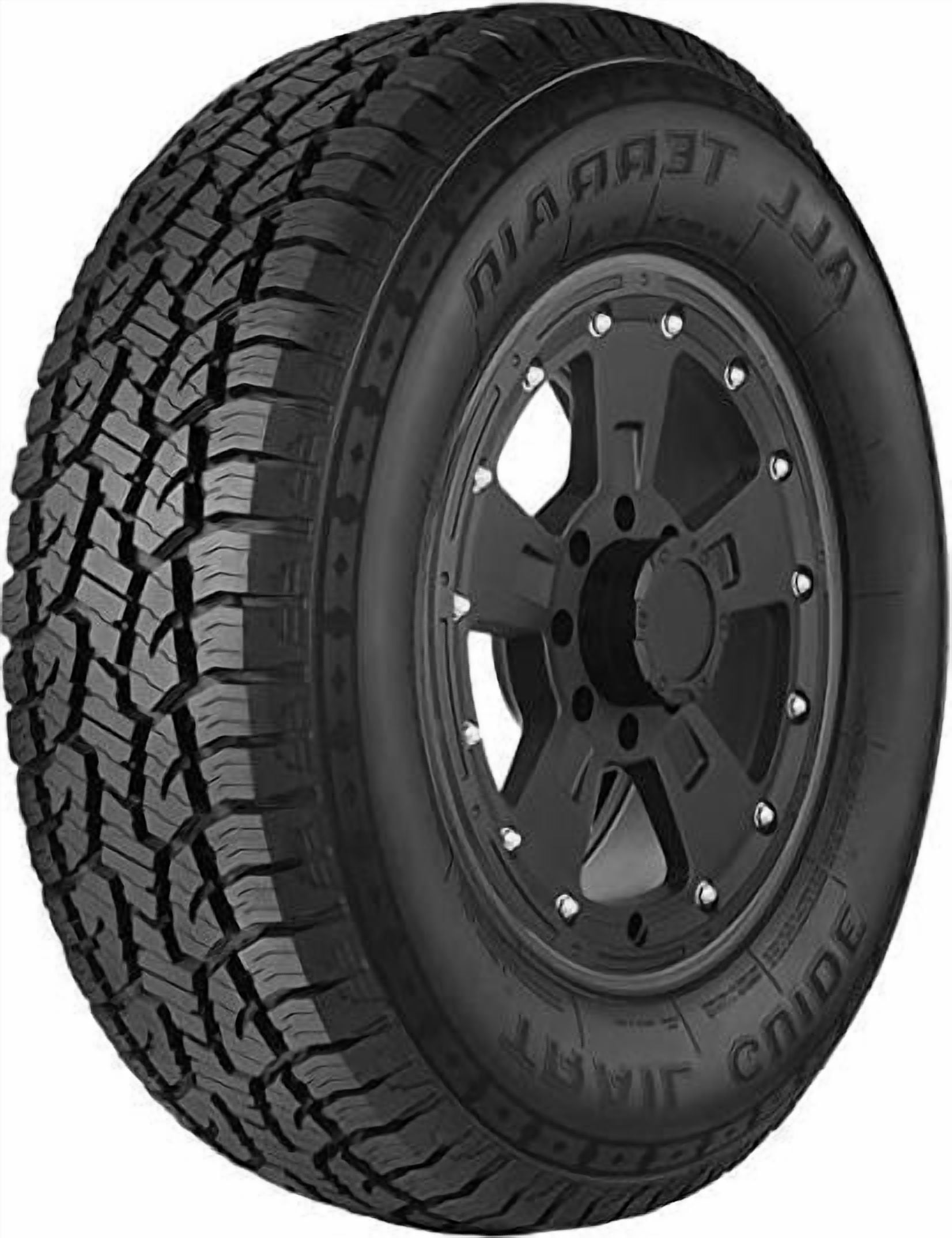$388.63The Trailguide All Terrain tire is a value priced and versatile all-season tire with an aggressive tread design for traction on all terrains and in all weather conditions. The large tread blocks have many sipes, or cuts in the tread rubber to aid in snow and wet traction. There is plenty of space between the tread blocks for mud and slush to evacuate from the tire footprint. de circumferential grooves to aid with water evacuation, and moderately large blocks in the tread for a basic level of traction in off-road conditions. The tires are durable and will hold up in harsh off-road conditions without problems.