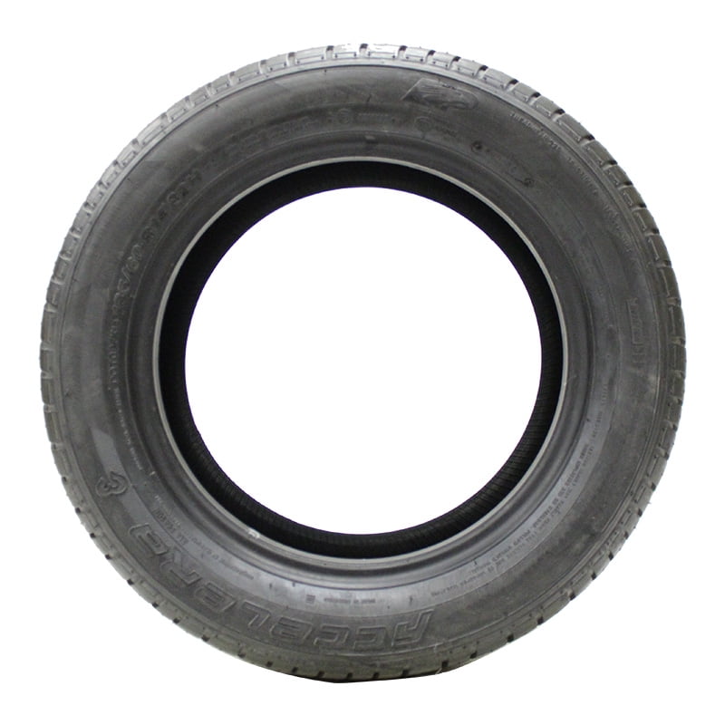 $128.99Accelera Iota OVERVIEW The Accelera Iota is a performance and high performance, all season tire manufactured for passenger vehicles and SUVs. This tire was manufactured with a dual, asymmetric tread pattern where each side of the tread has a specific function. The inner tread area promotes superb wet and winter weather traction, while the outer area boosts the dry weather performance. As a result, the tire promotes excellent all weather traction. The center circumferential rib of the tire boosts the tire’s driving stability, which also increases the control and road feel in these situations. The wet side of the tread pattern, with multiple lateral grooves from the center rib to the shoulder, enhances the tire’s water evacuation rate to prevent hydroplaning and improve wet traction and handling. The dry side of the tread pattern features continuous S-shaped lateral grooves with larger tread blocks that offer outstanding road grip on dry surfaces, enhancing the model’s dry cornering and braking abilities. This model was constructed with a contemporary tire compound that reduces the overall weight and improves its durability. Due to the reduced weight, the Iota’s rolling resistance was lessened, which in turn lowers the tire’s fuel consumption, making it more economic. The new tread compound is resistant to wear and accidental mechanical damages. The tread also prevents irregular wear throughout the pattern, due to the equally distributed driving force. The even wear on the tire allows a smooth on-road driving experience. This, along with the reduced fuel usage, makes this model very economical. Manufacturers recommend changing tires every 10 years. As long as tires are properly stored before they are sold, the year of their manufacture will not shorten their service life.