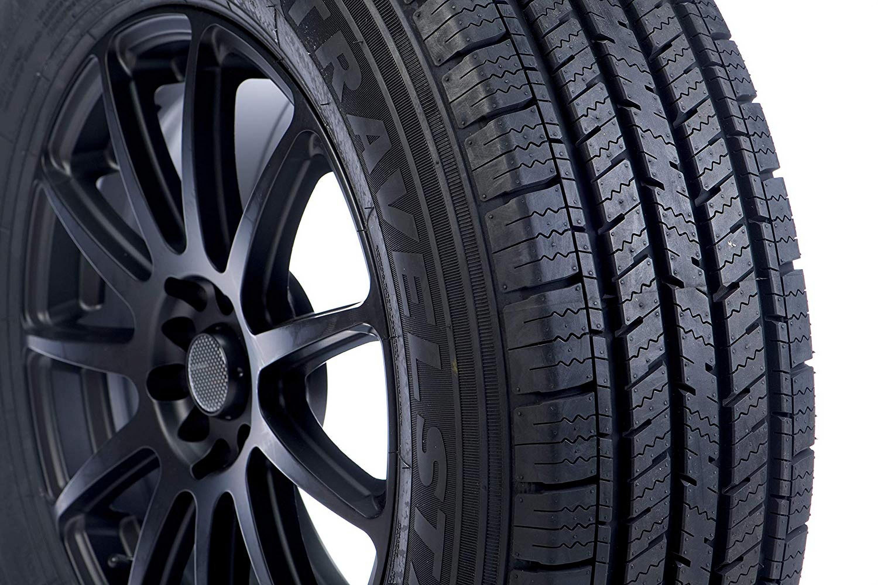 $128.13Travelstar Ecopath H/T OVERVIEW The Travelstar Ecopath H/T is a highway terrain all season tire manufactured for SUVs and light trucks. Travelstar offers a 50,000 mile treadwear warranty with this model. The tire has exceptional durability. Its reinforced internal structure features a full steel belt construction, which maintains the optimal tire shape under the driving and load pressure affecting the tire. It resists the shape’s deformation during the drive which improves its load carrying and withstanding capability. The optimal tire shape also improves the tire’s controllability by ensuring constant road contact. The upgraded road contact increases the steering responsiveness and stabilizes the tire’s structure while the model is in motion. The better load durability and easier control over the tires enhances the tire’s overall performance. The model’s symmetric ribbed tread pattern, with the high-density siping detail, and its all season tire compound work together to boost the dry, wet and winter weather road gripping ability. The siping detail and the tread block placement firmly grips the road surface throughout the year, while the tire compound keeps its flexible traction even in colder winter weather. The compound does not lose its traction and the additional biting edges of the siping detail firmly grip the road surface in all conditions, enabling the tire’s exceptional performing capability. The tread’s wide circumferential grooves upgrade the wet weather traction by dispersing water and slush from beneath the tire’s footprint. In this manner, the tire effectively resists hydroplaning and ensures a safer driving experience. The Ecopath H/T offers an extended tread life. The symmetric ribbed tread design’s optimized road contact enables the tire to evenly distribute the driving pressure along the entire tread area. The equally spread out forces of acceleration, cornering and braking avoid the formation of irregular tread wear across the tire’s surface. This lengthens the tire’s tread life, and with it ensures a longer lasting usability. Not all tire sizes are suitable for all vehicle types. Please refer to the item specifications for accurate information about vehicle type fitment for this particular size. Manufacturers recommend changing tires every 10 years. As long as tires are properly stored before they are sold, the year of their manufacture will not shorten their service life.