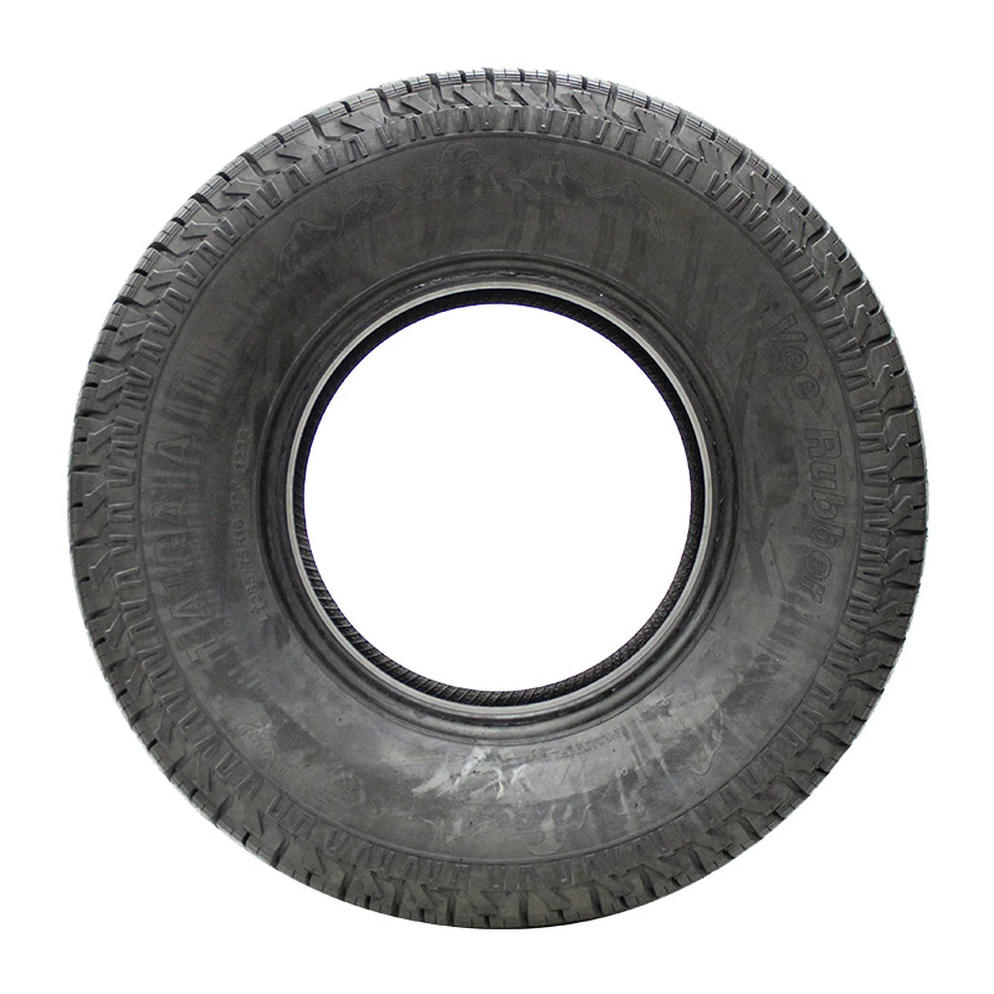$109.98Vee Rubber Taiga A/T P265/75R16 114S BSW. A rugged all-terrain tire designed for light trucks and SUVs, delivering a balanced performance both on and off the road. It features a zig-zag siped solid center rib for enhanced stability and steering control, large aggressive second-row and shoulder blocks for superior grip in diverse terrains, and NO-GO-SNO circumferential grooves that effectively evacuate water and trap snow and mud to improve traction in extreme conditions. Additionally, its constant contact design ensures a smooth ride and extended tire life, while a 5-pitch variation pattern reduces road noise, making it a dependable choice for drivers seeking durable, quiet, and versatile tires capable of handling highways, off-road trails, and challenging weather.