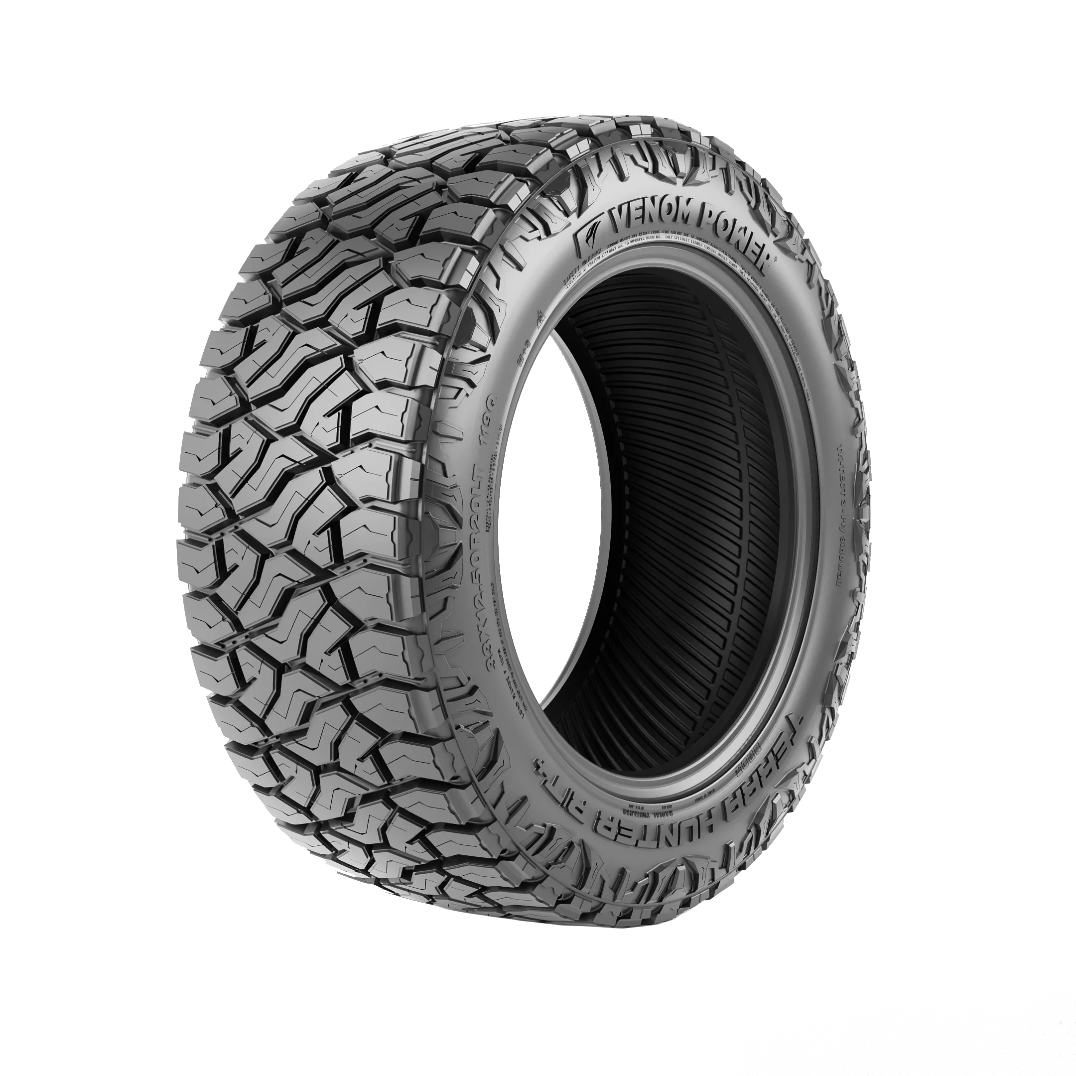 $216.87The Venom Power Terra Hunter R/T+ features aggressive stylish dual sidewalls and enhanced road bite ready to tread on challenging terrain with ease. Entitled to its versatile road performance, the Terra Hunter R/T’s advanced technology guarantees all-season traction, confident tread performance, tamed noise control, and long lasting tread life for increased transit comfort for adventure enthusiasts on- and off-road. Best suited for: SUVs, jeeps, light trucks Tire Benefits & Features: Dual sidewall design and sidewall armor All terrain traction Deep tread depths Hydroplane resistant Long lasting tread life Debris ejectors