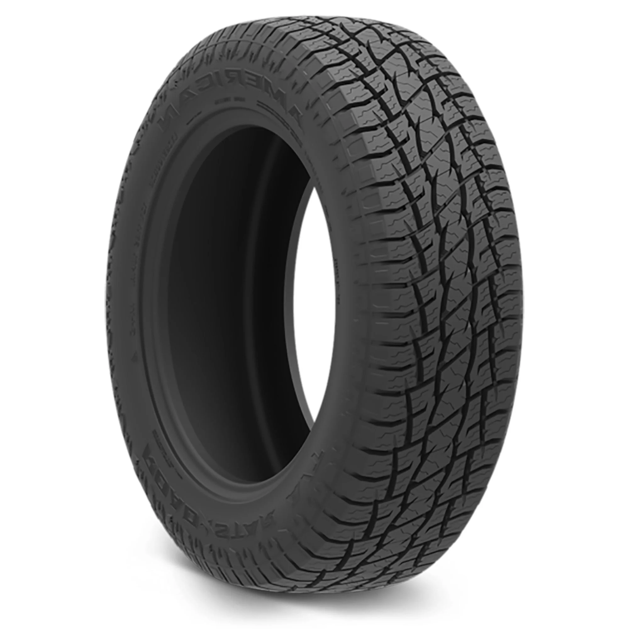 $134.84American Roadstar A/T OVERVIEW The American Roadstar A/T is an all terrain, all weather tire manufactured for SUVs and light trucks. American Roadstar offers a 40,000 mile treadwear warranty. Excellent all terrain traction is prompted with this tire. The optimized tread elements generate additional biting edges that enable the model’s consistent forward motion on different terrain surfaces. This allows the tire to conquer soft, loose, and uneven terrains with ease. Additionally, the self-cleaning tread elements eliminate mud, snow, and rocks stuck in the footprint. As a result, stone retention is avoided, while mud and snow cannot block the model’s surface contact. This combination promotes a safe on- and off-road drive. All weather traction is offered with this model. The tread pattern and the durable compound increase the tire’s grip in dry, wet, and winter weather. This allows the model to securely perform throughout the year. The compound maintains rubber flexibility even in hot summer or freezing winter weather conditions. The wide grooves disperse water and slush from below the tire’s footprint and avoid hydroplaning. This ensures great year-round driving safety. The tire improves its load and driving durability. This model can carry and withstand heavy loads without deformation in the process. This tire can perfectly perform by maintaining optimal shape under pressure. It makes this model a great choice for heavy-duty applications. It has a strong structure that can handle big loads and driving pressure. Since the tire has such a tough structure, it offers excellent load handling as well. Great damage resistance is provided with this tire. The reinforced internal structure and the durable rubber compound protect the tire from damage to its casing. This allows the tire to avoid external and off-road damage while the tires are in motion. As a result, the tire promotes a secured performance by avoiding cuts and impact damage from harming the casing. This guarantees a safer off-road performance. The American Roadstar A/T offers great controllability on various surfaces. The aggressive tread pattern maintains constant surface contact during the performance. It increases the tire’s steering responsiveness and driving stability. In other words, the steering response time becomes quicker and more accurate to the driver’s commands, while the structure is secured against driving pressure. Cornering is upgraded as well, thanks to the wide shoulder blocks and their constant surface contact. As a result, the driver has full control over the vehicle, offering a safe drive. All weather tires receive the three mountain peak and snowflake (3PMS) symbol for their exceptional winter weather performance. They are all season tires with extra winter weather grip, in order to guarantee safer year-round durability. This ensures their true and secure driving ability throughout the year. Not all tire sizes are suitable for all vehicle types. Please refer to the item specifications for accurate information about vehicle type fitment for this particular size. Manufacturers recommend changing tires every 10 years. As long as tires are properly stored before they are sold, the year of their manufacture will not shorten their service life.