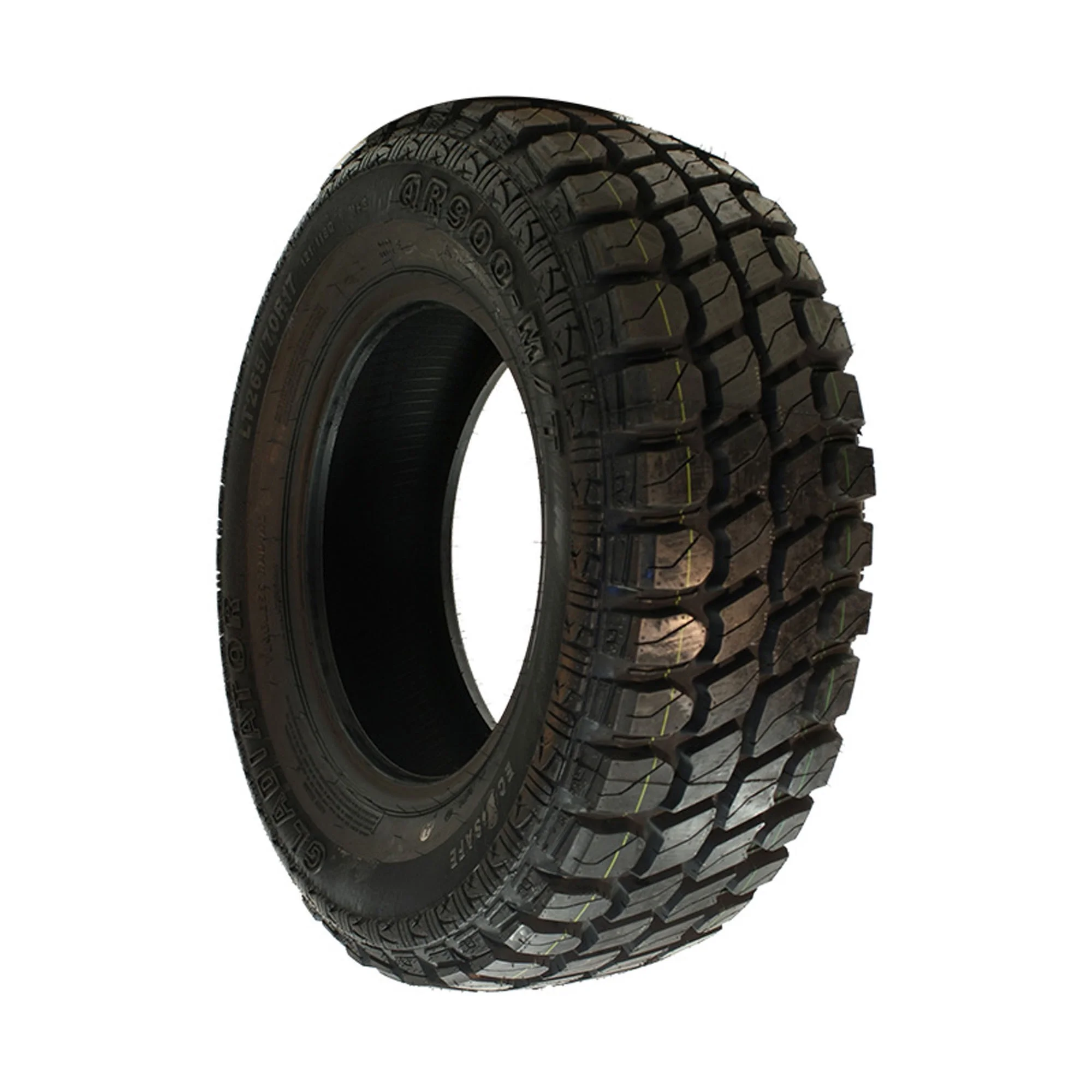 Gladiator’s QR900-MT is a mud terrain tire that’s designed for use on Jeeps, light trucks, and SUVs. An aggressive tread pattern boosts traction and performance in mud, dirt, and other off-road terrains, and the QR900-MT’s steel belted construction boosts strength and durability for a higher load carrying capacity and longer tread life.