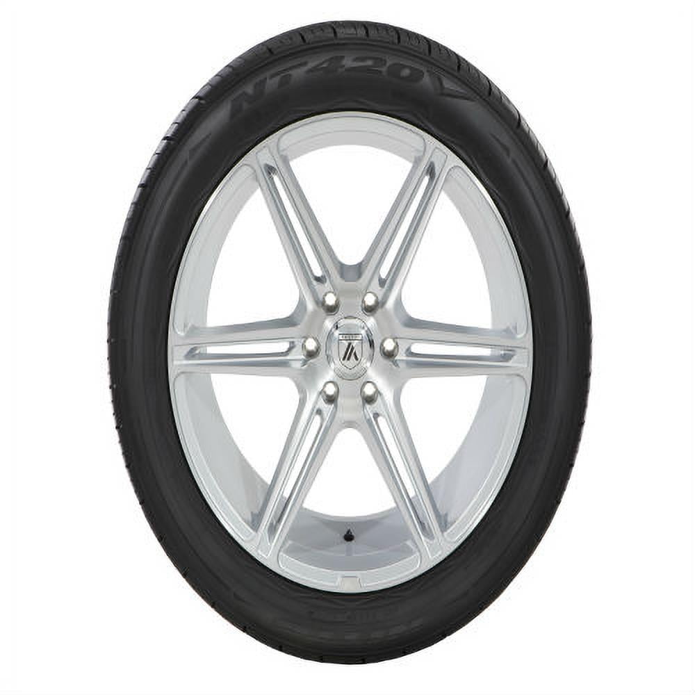 $165.12Nitto NT420V is an all-season tire designed for luxury trucks and SUVs. It features a unique non-directional asymmetric tread pattern that provides cross rotation for more even wear, longer tread life, and promotes confident performance in any weather conditions. The large outer shoulder blocks offer a larger contact with the road surface that improves cornering grip and performance in dry conditions. The asymmetric sipe and groove count along with variable pitch tread block design complement each other in decreasing any road noise, making the drive more pleasant and comfortable. Wide circumferential grooves help to whip water away from the tire’s footprint and resist hydroplaning, while lateral grooves help to bite into the surface for better wet traction.