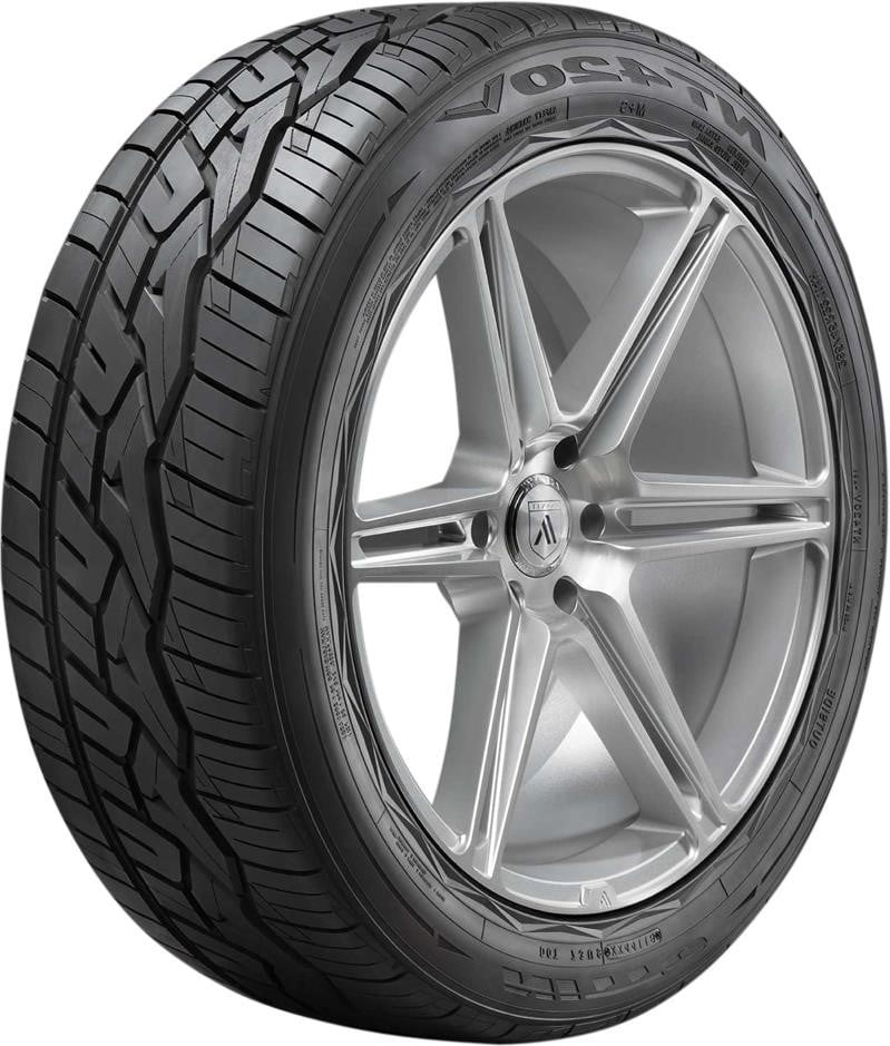 The Nitto Motivo is an all-season ultra-high-performance tire that’s made for performance-oriented sedans and coupes. While its advanced siping technology helps generate superior traction in wet conditions, the Motivo’s large blocks on the outer part of the tread are responsible for grip on dry surfaces. Backed by a 60,000 mile limited manufacturer tread life for W- and Y-speed rated sizes, the Motivo features alignment indicators within the tread that visually show how the tire is wearing. Additionally, the Motivo utilizes 3D Multi-wave sipes that interlock to boost acceleration and braking performance when driving at higher speeds.