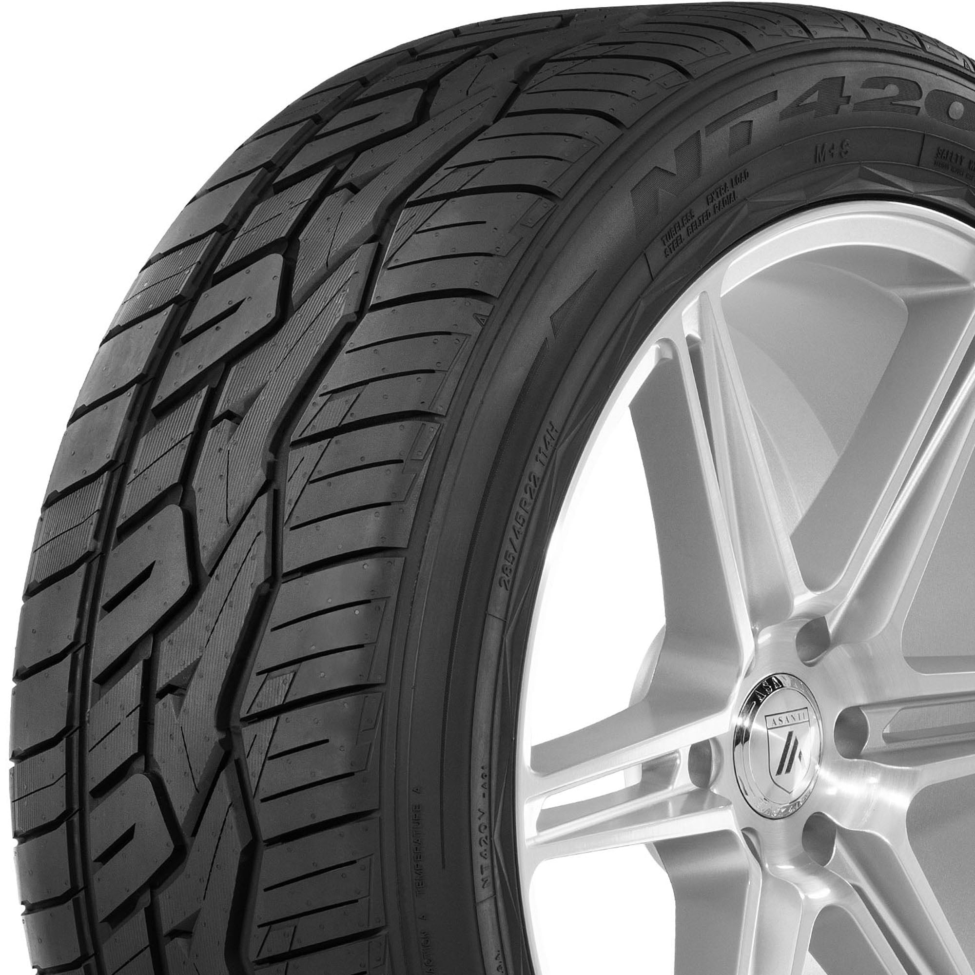 $184.04Nitto NT420V 305/40R22 114H XL OVERVIEW The Nitto NT420V is an all-season tire for light trucks and offers drivers superior longitudinal traction and cornering grip on dry roads. Large outer tread blocks and an asymmetric tread design maximize the road contact patch to provide stability during cornering, and the NT420V’s sipe and groove pattern lowers road noises and vibrations to create a quiet, comfortable ride for drivers and passengers. Additionally, the NT420V’s extra biting edges increase grip on wet roads for better hydroplaning resistance.