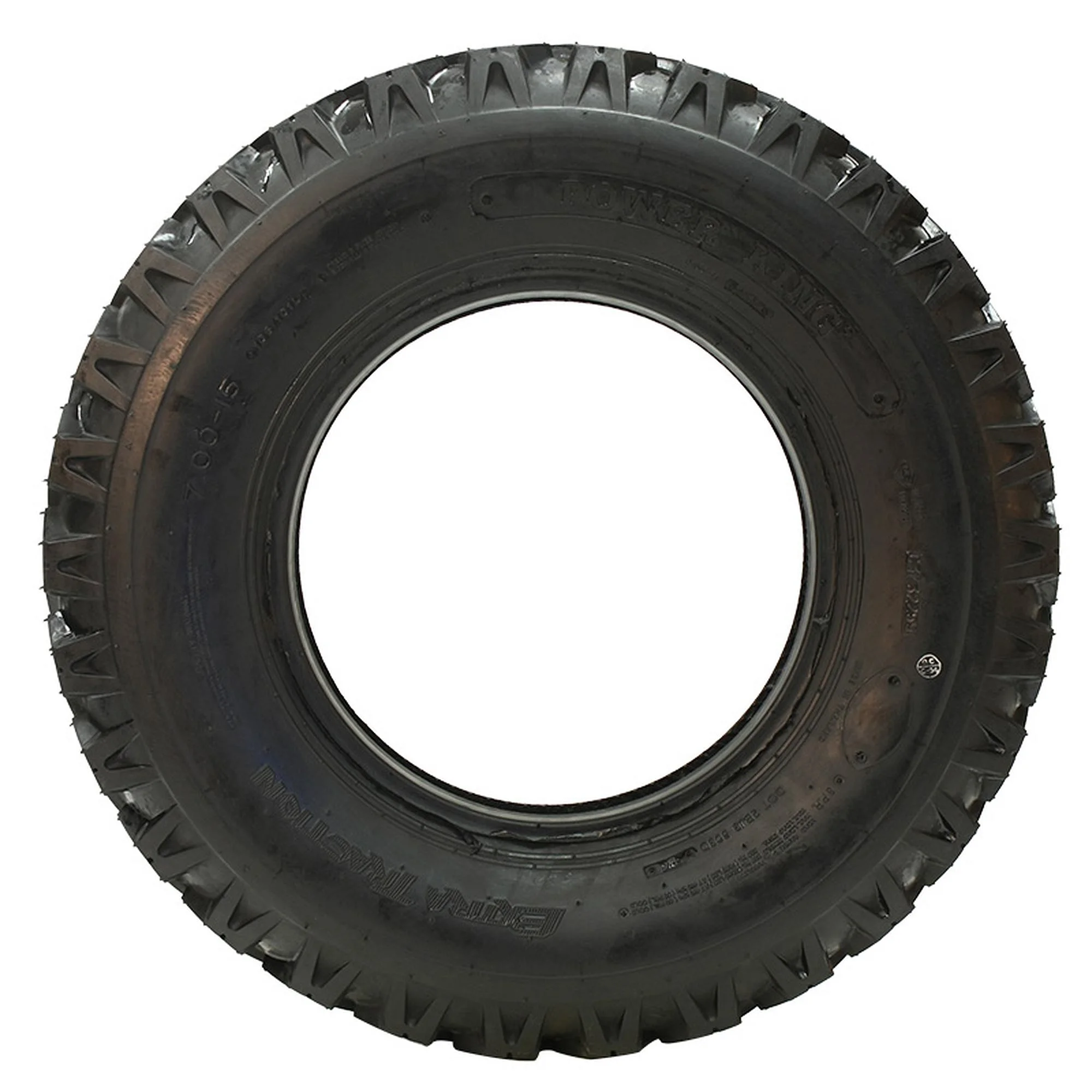 $133.29Power King Super Traction II 7.50-16 116L E OVERVIEW The Power King Super Traction II is a bias-ply all-terrain traction tire that’s designed for light trucks and SUVs and can also be pinned with studs. The Super Traction II features an extremely aggressive tread pattern with big traction bars for a solid grip in mud and sand. An advanced, self-cleaning lug design ensures optimal grip on varied terrains, and the Super Traction II’s optimized tread compound offers solid traction and promotes reduced treadwear. Sipes provide additional grip and traction, and the Super Traction II’s squared shoulder area helps in achieving superior stability and control. Additionally, the sturdy sidewalls of the Super Traction II improve load carrying capacity and restrict tire deformation for a longer tread life.