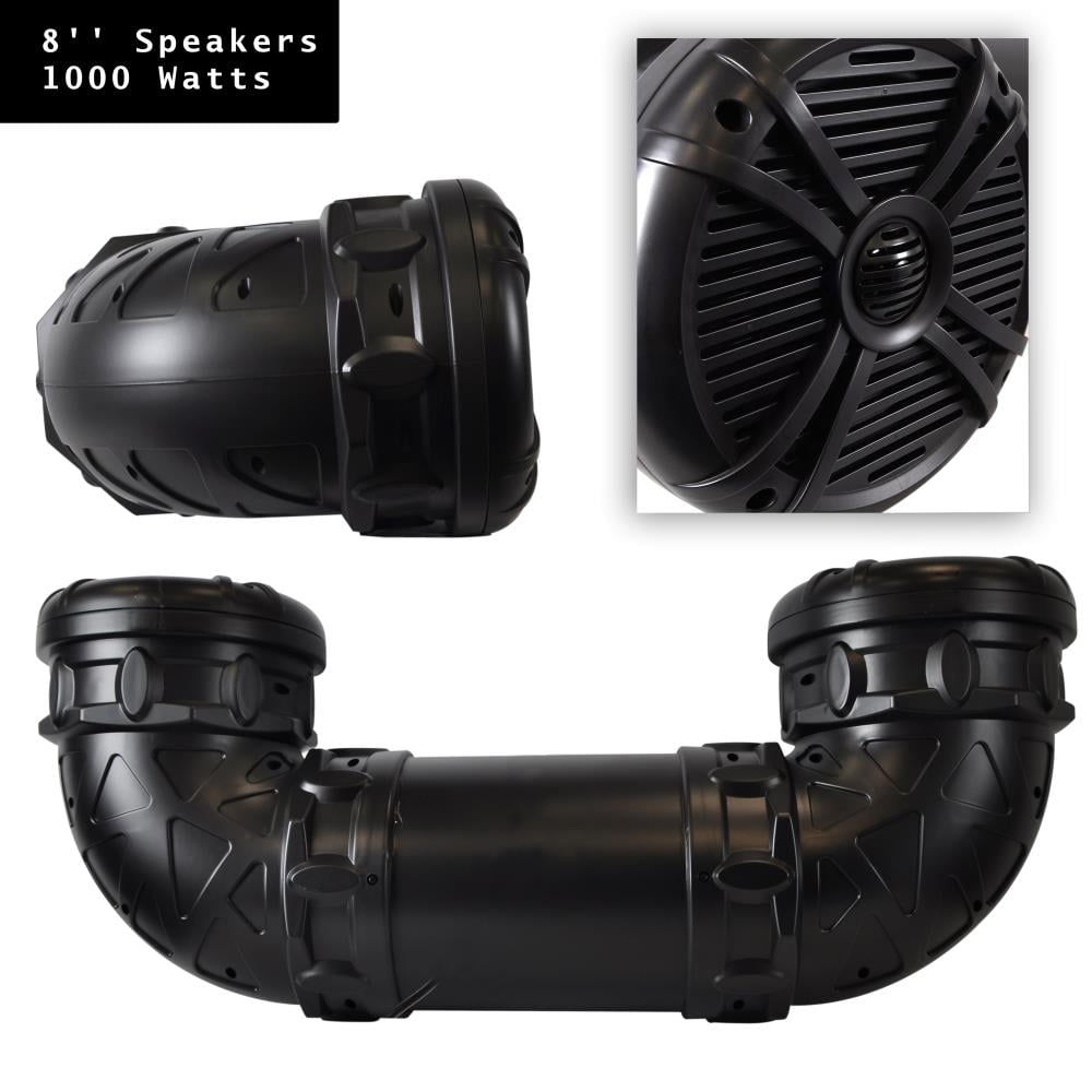 $224.88This Pyle Marine ATV Bluetooth Speaker will get the party started whether you’re indoors or out.This 1000 watt speaker has a rugged heavy-duty construction design with weatherproof and water-resistant housing. Perfect for any outdoor gathering, beach day, personal use, or even to install in your vehicle. Marine speaker offers Bluetooth connectivity that works with the latest devices, including iPhone, Android, smartphones, iPad, and tablets. Speaker also comes with an aux port allowing you to use all kinds of mp3 players or audio players.You can install this speaker in any of your vehicles easily thanks to the universal mounting design, ideal for ATV, UTV, 4x4s, golf carts, jetski, snowmobiles, and many more. The speaker includes highly customizable color-changing LED lights. Choose from up to 19 colors, and easily change their speed and brightness all with the included remote control.Play your music wherever you want and have a BLAST with the Pyle Marine ATV Bluetooth Speaker.