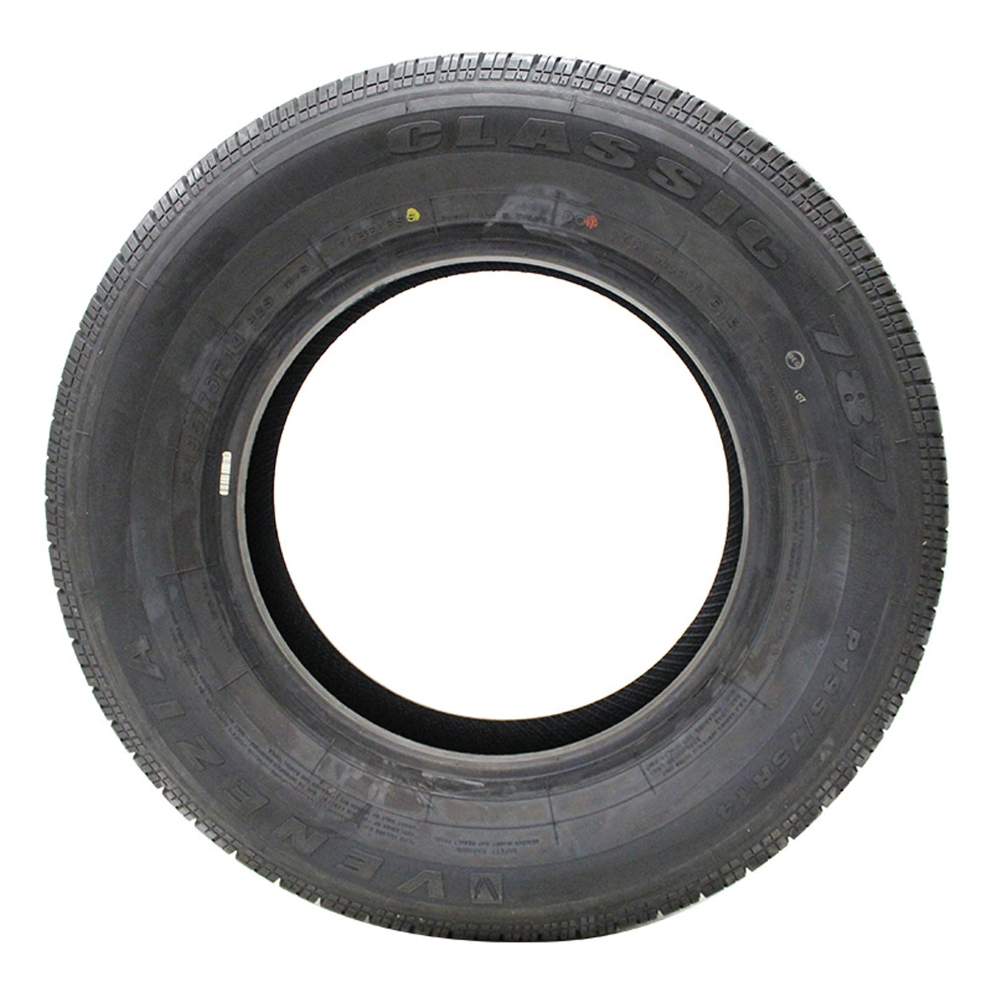 $59.99Venezia Classic 787 P205/70R14 93S OVERVIEW The Venezia Classic 787 is an all-season tire that’s designed for use on passenger cars and features white sidewalls for enhanced cosmetic appeal plus slotted shoulders for better stability and cornering. While the tread of the tire is optimized for quieter rides, the wear resistant rubber compound ensures longer and slower wear. The wider longitudinal grooves of the Classic 787 optimize wet weather performance by reducing the risk of hydroplaning, and the flexible body structure of the tire helps in enhanced comfort levels by reducing road vibrations.