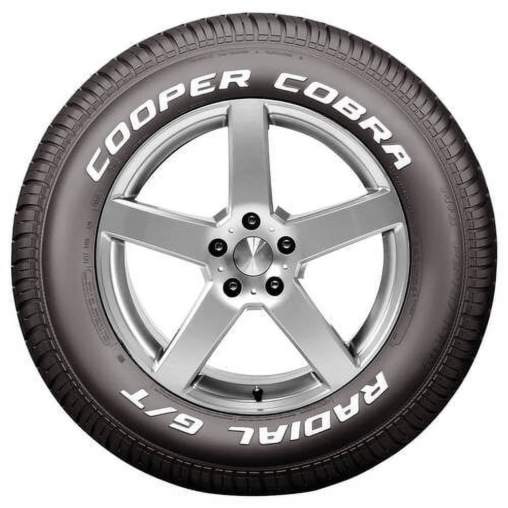 The Cooper Cobra Radial G/T tire delivers period-correct looks for sports cars and muscle cars with modern-day design and performance. The Cobra Radial G/T features an all-season tread pattern with wide circumferential grooves to avoid hydroplaning, a solid center rib that enhances road manners and stability, slotted shoulders, and a durable tread compound. Backed by a 50,000 mile limited manufacturer tread life, the Cobra Radial G/T provides true vintage style and looks with its raised white letter sidewall.