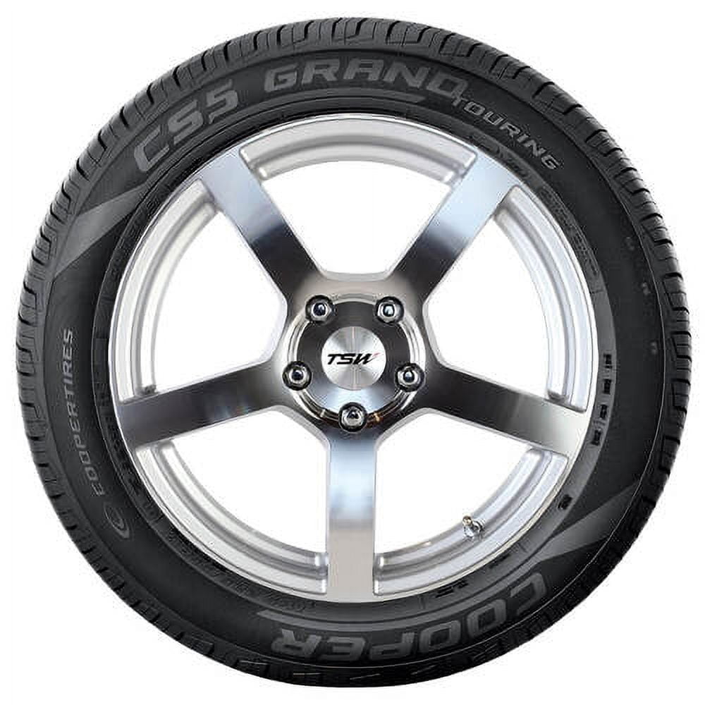 Designed for use on sedans, minivans, and crossovers, the Cooper CS5 Grand Touring tire delivers dependable year-round traction and long wear with touring-tire ride comfort. The CS5 Grand Touring uses a silica-rich tread formulation with a high-turnup single polyester ply casing, two steel belts, and a spiral-wound jointless nylon cap ply for a cushiony ride. Where the rubber meets the road, there’s an asymmetric all-season tread pattern with an outboard shoulder that features larger tread blocks, and an inboard section with higher sipe density, and circumferential grooves to resist hydroplaning. Additionally, the Cooper CS5 Grand Touring is protected by an 80,000 mile limited manufacturer tread life.