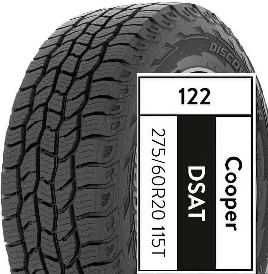 $153.94The Cooper Discoverer All-Terrain 275/60R20 115T All-Terrain Tire has a 60K (SUV) 55K (LT) Treadwear Warranty. The tread design and internal construction helps the tire fight uneven wear to attain treadwear warranty. Sound Barrier Walls in the shoulders of the tire help keep tread pattern noise to a minimum. Repeating pitch sequence helps provide a smooth ride. Silica tread compound helps the tire grip the road in wet weather. Circumferential grooves and increased siping in the tread design help push water out of the tire’s way for better wet handling. Snow groove technology helps bite into snow providing confidence in winter driving. Similar to its predecessor, the tread pattern kicks out stones with the stone ejectors (in the intermediate grooves). Stone barriers keep stones from drilling into tires. Tread compound delivers off-road performance on unpaved roads.