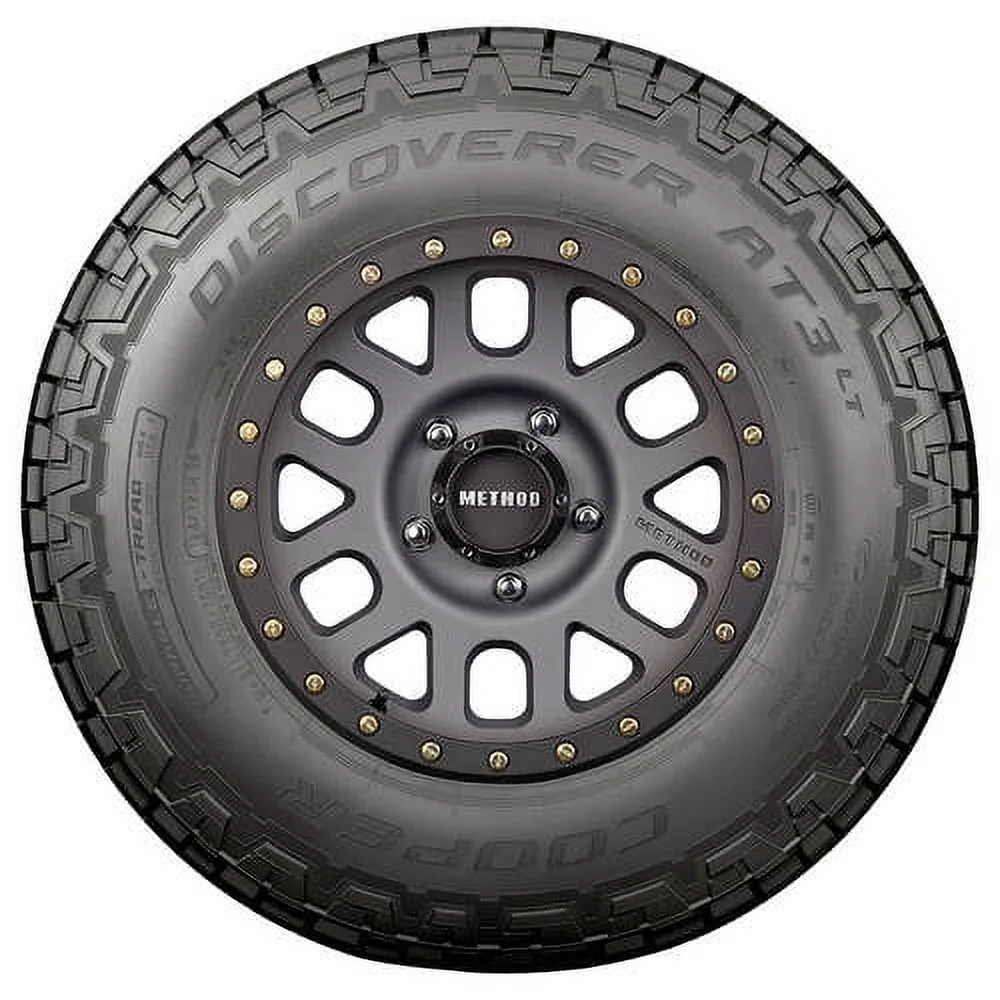 The Discoverer AT3 LT tire from Cooper is ready for the tough jobs, with enhanced load capacity, a tough, durable casing, and an aggressive off-road tread pattern. The Discoverer AT3 LT is designed with Cooper’s Durable Tread technology for long wear, tough Secure-Grip tread pattern, and a tread pitch that’s computer-tuned to keep road noise low. Additionally, the Discoverer AT3 LT is protected by a 60,000 mile limited manufacturer tread life.