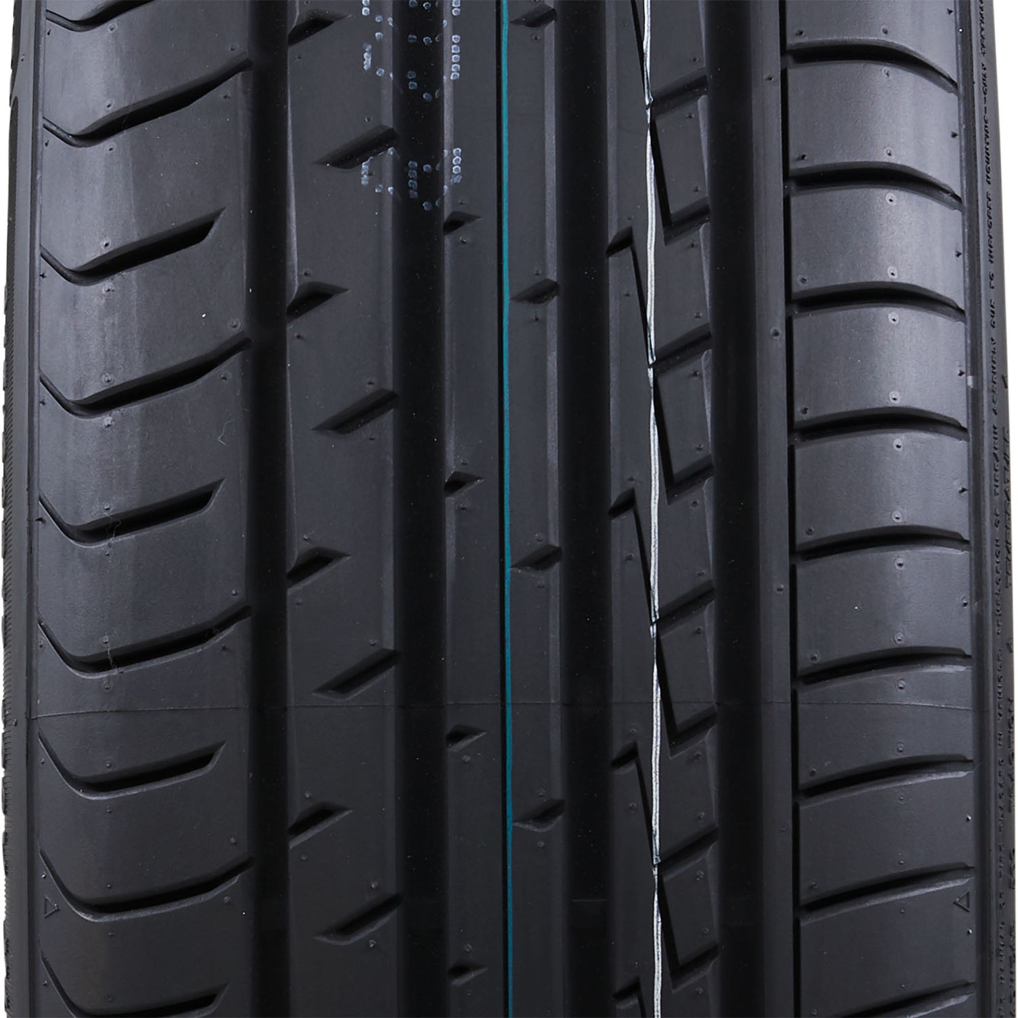 The tire promotes exceptional all weather traction and excellent road gripping ability. The special tread pattern firmly grips the road in dry, wet and winter weather. The wide circumferential grooves actively channel water away from the tire footprint, effectively preventing hydroplaning in dangerous situations in the process. The enhanced hydroplaning resistance and all weather traction ensure a safer year round driving experience.