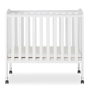 Dream On Me 2-in-1 Folding Portable Mini Crib in White, Mattress Pad Included, Easy to Fold and Store Baby Crib, Two Adjustable Mattress Height positions Convertible Crib