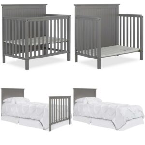 Dream On Me Ava 4-in-1 Convertible Mini Crib, Steel Grey