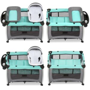 Dream On Me Zazu Baby Swing, Baby Swing for Infant, 5 – Swinging Speed, Two Attached Toys, Bluetooth Enabled and Remote Control, Grey and Blue