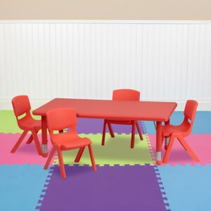 Flash Furniture Emmy 24”W x 48”L Rectangular Red Plastic Height Adjustable Activity Table Set with 4 Chairs