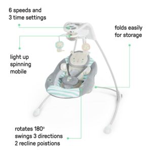 Ingenuity InLighten Baby Swing – Cool Mesh Fabric, Swivel Infant Seat & Light Up Mobile – Braden (Unisex)