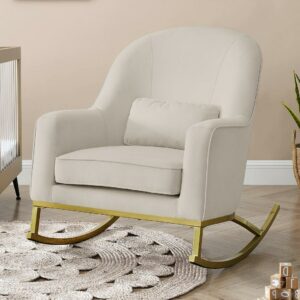 MoDRN Glam Velvet Rocking Chair with Lumbar Pillow, Off-White/Satin Brass
