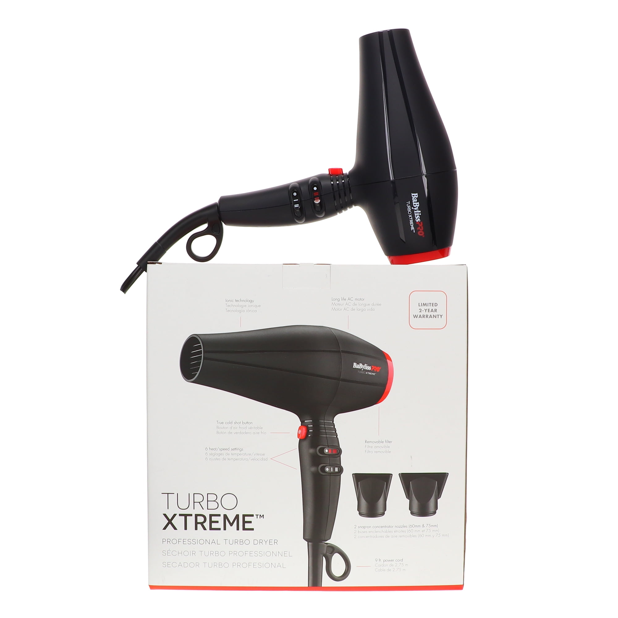 $94.59The BABYLISS ~ PRO TURBO EXTREME DRYER will have your hair dry in a matter of minutes. It features 1800 watts for fast drying, 1875w power with TurboAir™ technology to provide superior airflow that dries faster across multiple heat and speed settings. It also offers the cold shot button for setting styles after blow-drying, has a removable filter which will make clean up easier!