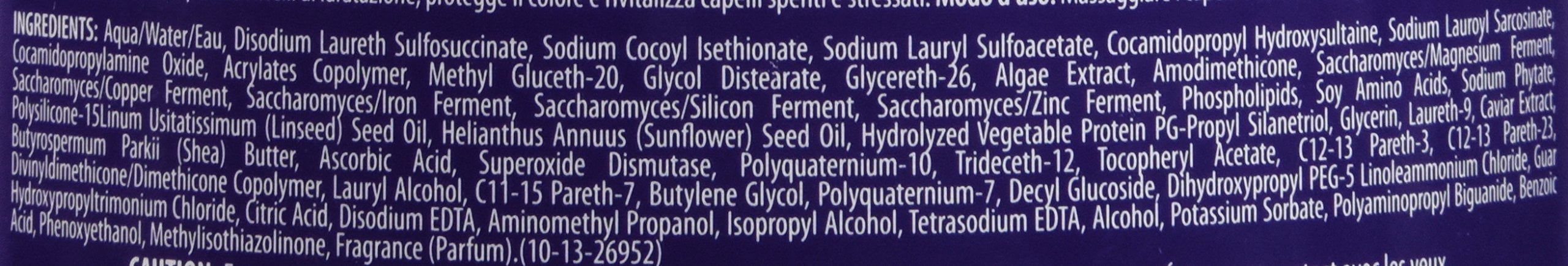 $60.16What it is: Alterna caviar anti-aging moisture shampoo attracts, retains, and rebalances moisture while protecting color, and improving the overall performance of dry, brittle hair. What it does: Sulfate and salt (Sodium chloride) free. Formula gently cleanses without stripping color. Restores both vibrancy and elasticity to the hair. Targets the aging process containing three supercharged, key ingredients. What else you need to know: Formulated with sea silk, color hold, and UVA/UVB protection to shield from color fade, daily stresses, and future damage.