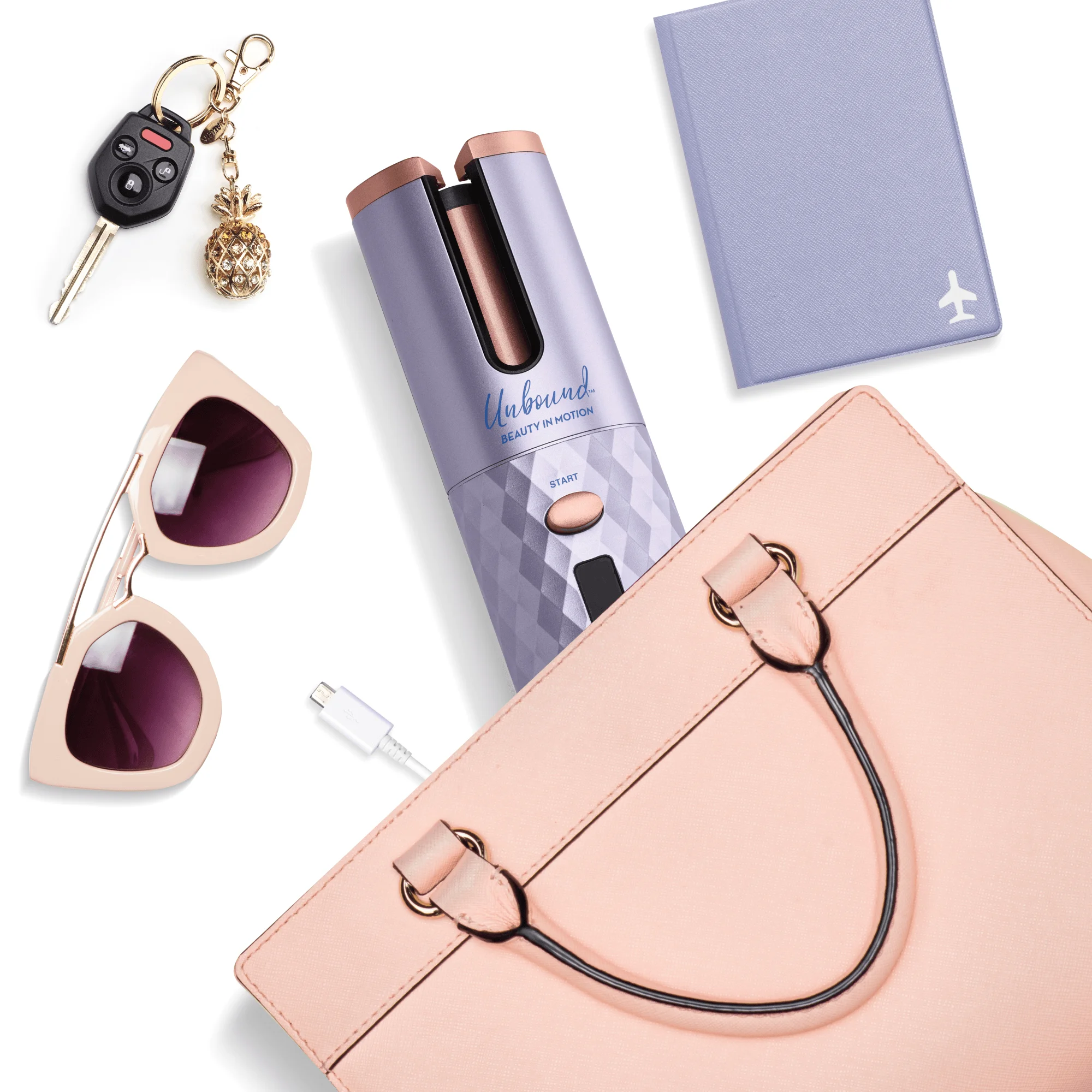 $54.17New from Conair, Unbound Cordless Auto Curler. This revolutionary technology allows you to curl and wave your hair anytime, anywhere. The Unbound cordless -rechargeable auto curler features rechargeable lithium ion batteries and a removable USB charging cable to charge. Once charged, the Unbound Cordless Auto Curler can be used cord-free for up to 60-minutes. Run time will vary based on hair type and heat and timer settings selected. Charge fully overnight before first use. Charge time will vary depending on adapter and power source. Create beautiful curls and waves with the multi-directional curl chamber (left, right, or mixed) that reaches 400 degrees F for professional curl results. The 3 heat and 4 timer settings allow you to select the desired temperature and the time setting to create tight to loose curls and waves. Unbound Cordless Auto Curler from Conair is easy to use and requires no skill makes for perfect replacement for your traditional curling iron or curling Wand without the cord. Perfect for travel and on-the-go styling and easily fits in your handbag or gym bag for Beauty in Motion. Includes USB charger and 2 lithium ion batteries. Individual airline restrictions may apply. Check with your carrier. New! Create beautiful curls or waves anytime, anywhere with the Unbound cordless auto curler from Conair, the creators of the Curl Secret auto curler. Easy to use, No Skill Required ~ replacement for your traditional curling iron or curling wand. Perfect Curls or Waves Every time for Beauty In Motion Up to 60-minute cord-free run time; Run time will vary based on heat and timer settings selected as well as hair type. Rechargeable Auto Curler ~ Charge fully overnight before first use. Charge time will vary depending on adapter and power source. Multi-directional curl action (left, right, or mixed) with anti-tangle protection 400 degrees F highest heat for professional curl results 3 Heat / 4 Timer Settings allowing you to create tight to loose curls and waves anytime, anywhere with Auto Off feature LCD Digital Display shows all settings: heat, timer, battery level, and curl direction Ceramic curl chamber reduces frizz and adds shine Auto off feature. Unit will shut off automatically after 15 minutes, if left on and idle, to preserve battery life. Compact Size (2″ x 7.5″ x 2″) ~ perfect for on-the-go styling! Easily fits in your handbag or gym bag for Beauty In Motion Includes: USB Charger Includes 2 lithium ion batteries. Individual airline restrictions may apply. Check with your carrier.