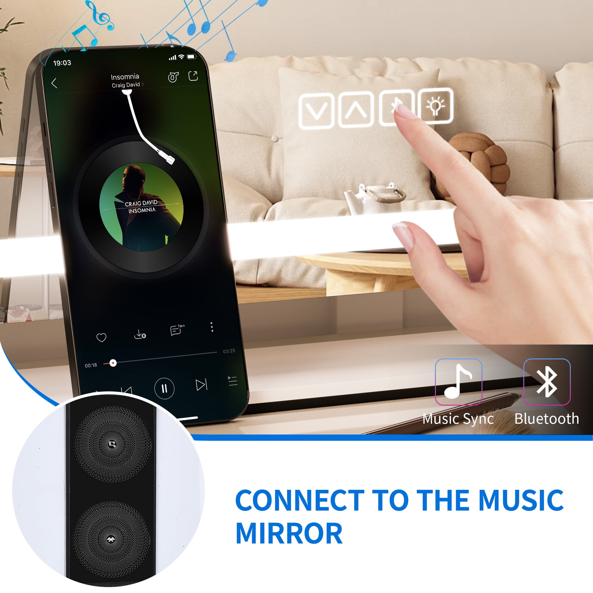 $38.67Original price was: $38.67.$30.52Current price is: $30.52.Hands-free beauty meets superior technological function with Danielle Creations®’ mirrors. Connect any smartphone device to make calls, listen to music, or watch videos such as makeup tutorials to follow while getting glam! The convenient stand allows you to enjoy these features hands-free, and even charges while in use. This sleek, white, contemporary designed vanity mirror sits beautifully on any counter, desk, or vanity.