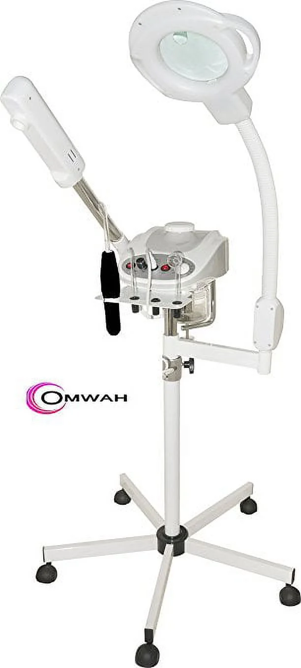 $257.993 in 1 facial steamer is a professional quality multi function facial instrument that is a must have for any salon or spa. This versatile, cost effective unit features a face steamer with adjustable arm, ozone sterilization, 5x magnifying lens with soft light and cold lamp, high frequency facial tool, thermal protector and automatic shut off function. Well built and with high quality components the M-2005D facial steamer is designed to remain reliable and provide years of trouble free service. The heavy-duty base and stand is height adjustable and includes easy roll castors to allow convenient maneuverability throughout the salon or spa.