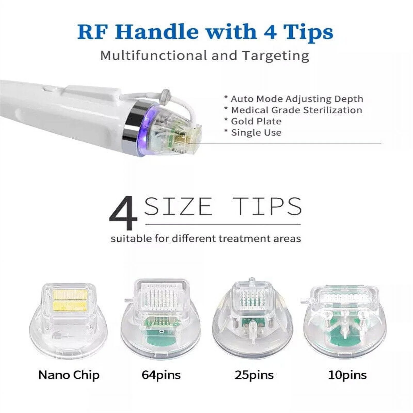 $34.38Function Face Treatment: 1.Non-Surgical Face Lifting 2.Skin Tightening 3.Skin Rejuvenation 4.Whitening 5.Pore Reduction 6.Acne Scars Removal Body Treatment: Scars, Neck Wrinkle, Stretch Mark Removal Advantages Non-Insulated Stepping motor type: needle inserts to skin smoothly without shock Gold plated needles: high bio compatibility, suits metal allergy patient Precise depth control: 0.2-3.5mm in unit of 0.1mm Safety system: -sterilized disposable cartridges -suction combined probe for better skin contact User-friendly hand piece design: -hand piece trigger button -4 different shape cartridges suits to different treatment area Technical Parameter Item Type: Cartridges Feature: Replaceable Cartridges: 10/25/64 pins Weight: 0.5 lb/10pcs Skin Type: All Skin Types Packing List: According to the link