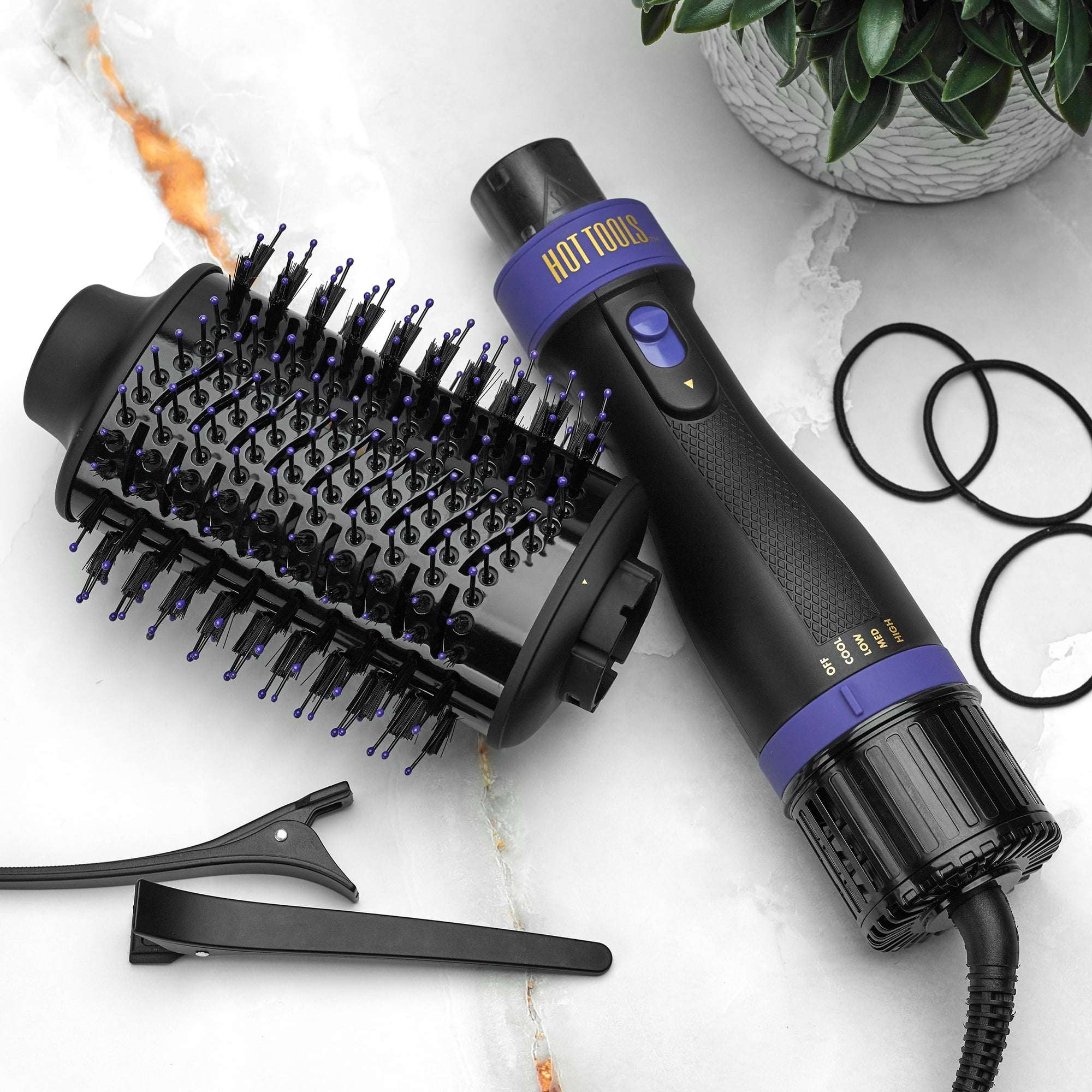 $58.32Original price was: $58.32.$51.59Current price is: $51.59.Create your favorite looks and salon-quality blowouts in half the time with the Hot Tools HTDR5586 Signature Series One-Step Detachable Volumizer and Hair Dryer. This lightweight styling brush allows you to straighten, volumize, and style with a unique vent pattern, temperature control, cool tip, and easy-release, detachable brush head. This blow-drying brush iron saves space at home and on-the-go with the easy-release, detachable brush. Shape and maneuver effortlessly with the H7 oval design, crafting beautiful results in one step. Designed by stylists, the Smoothflow bristles and vents guide airflow while Direct-Ion technology combats frizz, promoting a faster, less damaging blow-dry. Silkglide Boartech bristles provide a detangled, sleek look, and Refresh3 activated charcoal-infused bristles work to neutralize odors and absorb toxins on wash-day and 2nd-day hair. This hair dryer brush utilizes 3-heat-and-speed settings, customizable for all hair types. The Thermaglide ceramic barrel maintains temperature for hairstyle consistency and the cool tip keeps your hands safe. Enjoy getting ready with the convenient 6-foot swivel cord, offering you more range and movement as you style. Replace your dryer, straightener, and curling iron with this all-in-one Hot Tools. Let this multi-use styler do the work so you can easily achieve hairstyles you love!