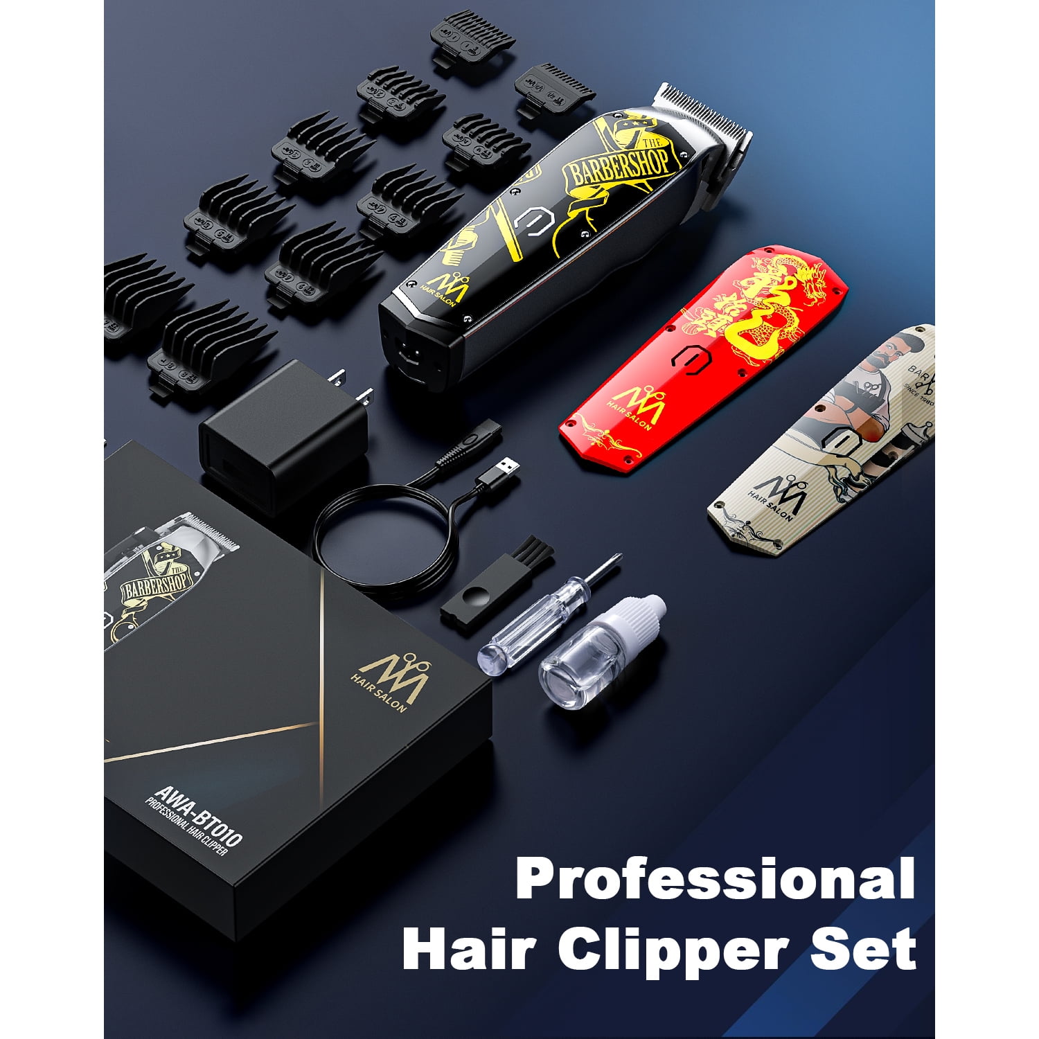 $39.55Men’s Professional Hair Clipper Electric Cordless Barber Clipper and Trimmer Set Groom Kit for Men A Professional Men’s Clipper Set made for Salons and Barbers. INBUTY electric hair clippers for men have been used by professionals in the salon and barbering industry, not only the perfect choice for hairdressers’ make styling, but also for daily care at home. Our powerful 7000RPM Motor & Sharp Precision Blades are made to execute a smooth cut for all hair types & withstand A Full day’s work of cutting Hair. You are able to adjust The Lever for precision or Zero-Gap the blades, you are going to produce a smooth cut either way. With Barbers in mind, Our product was made to last long and performs well on different skin & Hair types. Feel Free to take it across the world as the Voltage is compatible worldwide at 220V. Our men’s hair clippers with a safe R-angled blade design that won’t harm the scalp and are tested for safety on arms and fingers. Low Noise Design The cordless hair clipper adopts newest high-quality noise control technology, and the tested noise is less than 55db (within a distance of 30cm), allowing you to have a comfortable and quiet haircut time. With Hook Easy Hang/Take The bottom of the barber kit is designed with hooks, which can be hung on the wall for easy access and storage by the hairdresser. Constant Temperature Technology The hair clipper has the blade constant temperature technology, which has low friction and low heat when trimming, so as to avoid the high temperature of the clipper and damage to the hair. Package Included: Hair clipper x 1 Guide combs x 10 USB cable x 1 USB wall charger x 1 Replacement covers x 2 Cleaning brush x 1 Oil x 1 Blade protector x 1 Blade screwdriver x 1 Replacement screws x 6 User manual x 1 (Please read the user manual carefully before using it!)