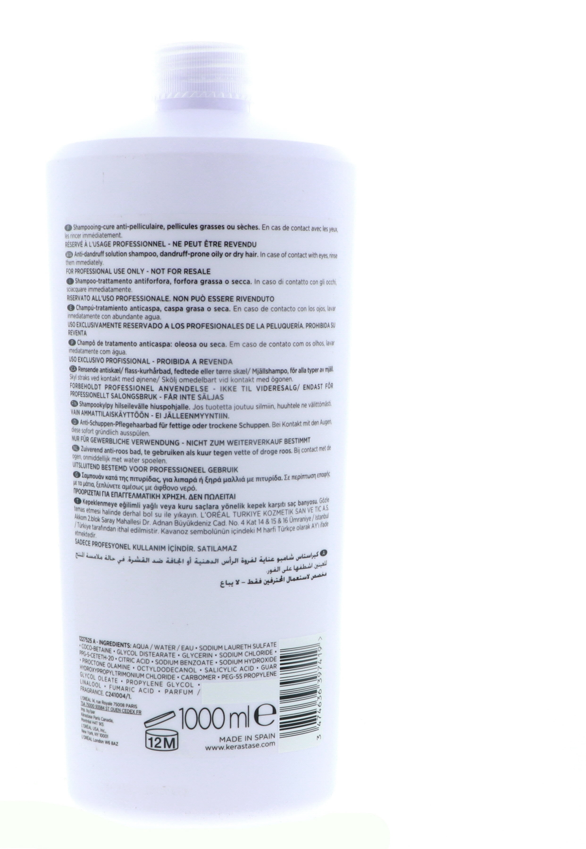 $55.89Kerastase Bain Anti-Pelliculaire 1 Liter This shampoo gives long-lasting protection against dandruff Scalp is soothed and exfoliated Hair is left soft and toned and zinc pyrithione targets and eliminates bacteria responsible for dandruff A silicon-free anti-dandruff shampooContains an active ingredient to treat the causes of dandruffBlended with exfoliating Salicylic Acid to provide a deep scalp cleansingPrevents the recurrence of dry or oily dandruff for eight consecutive weeksGreat for dandruff-prone oily or dry hair Tested under dermatological controlTo use: Apply to damp hair emulsify & massage to activate micro-circulation & rinse thoroughly
