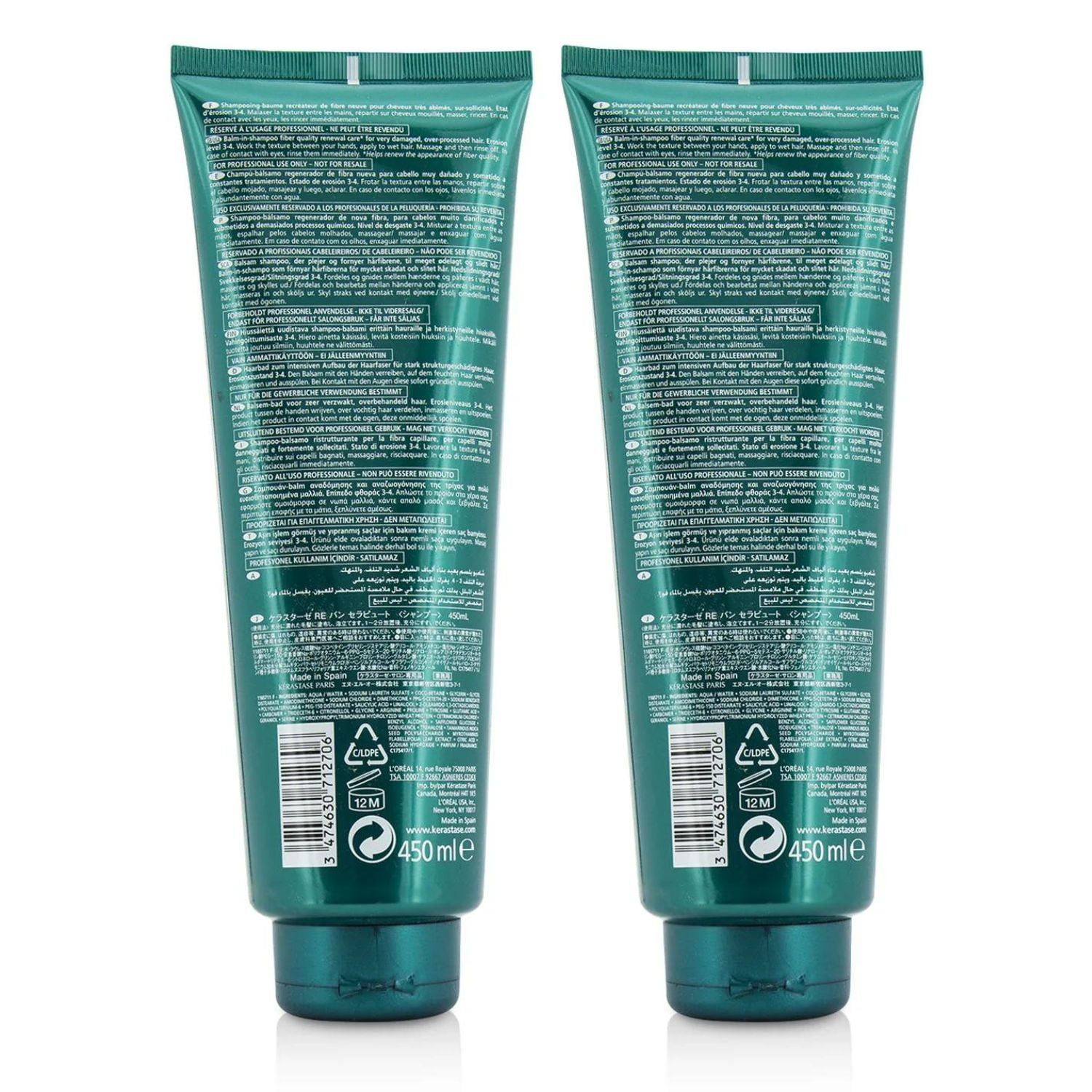 Kerastase Bain Therapiste Repairing Shampoo for Weak and Damaged Hair 15 oz, Pack of 2