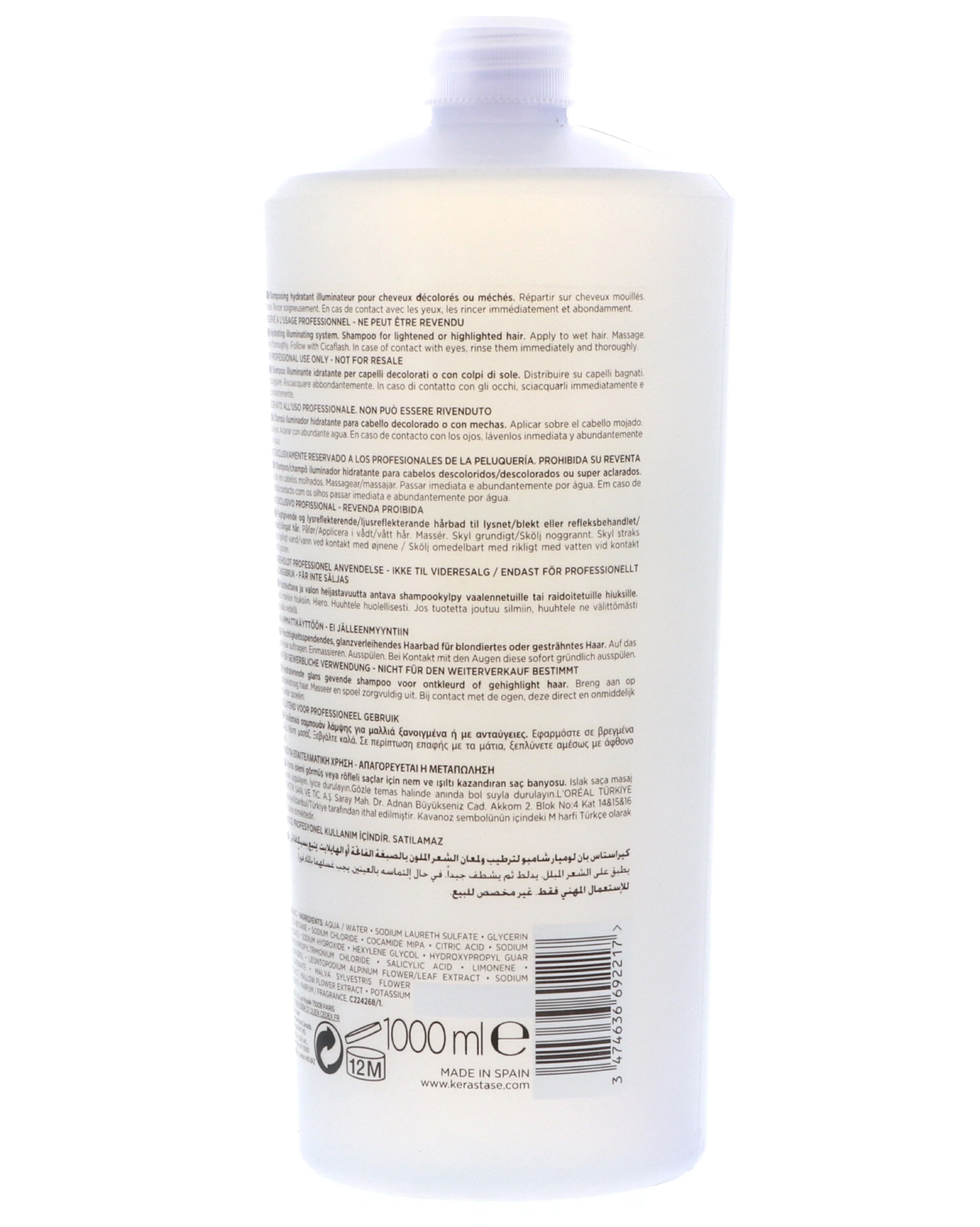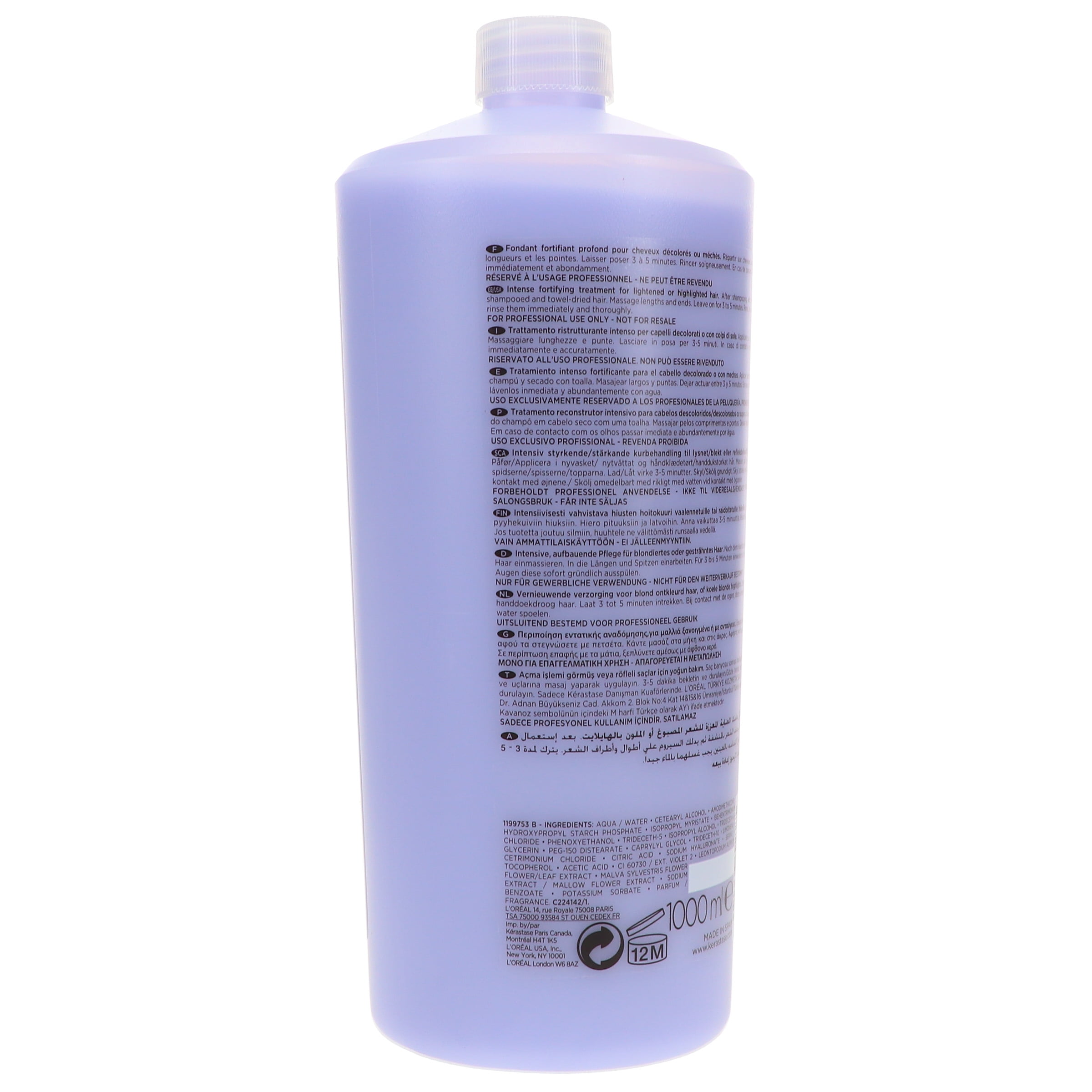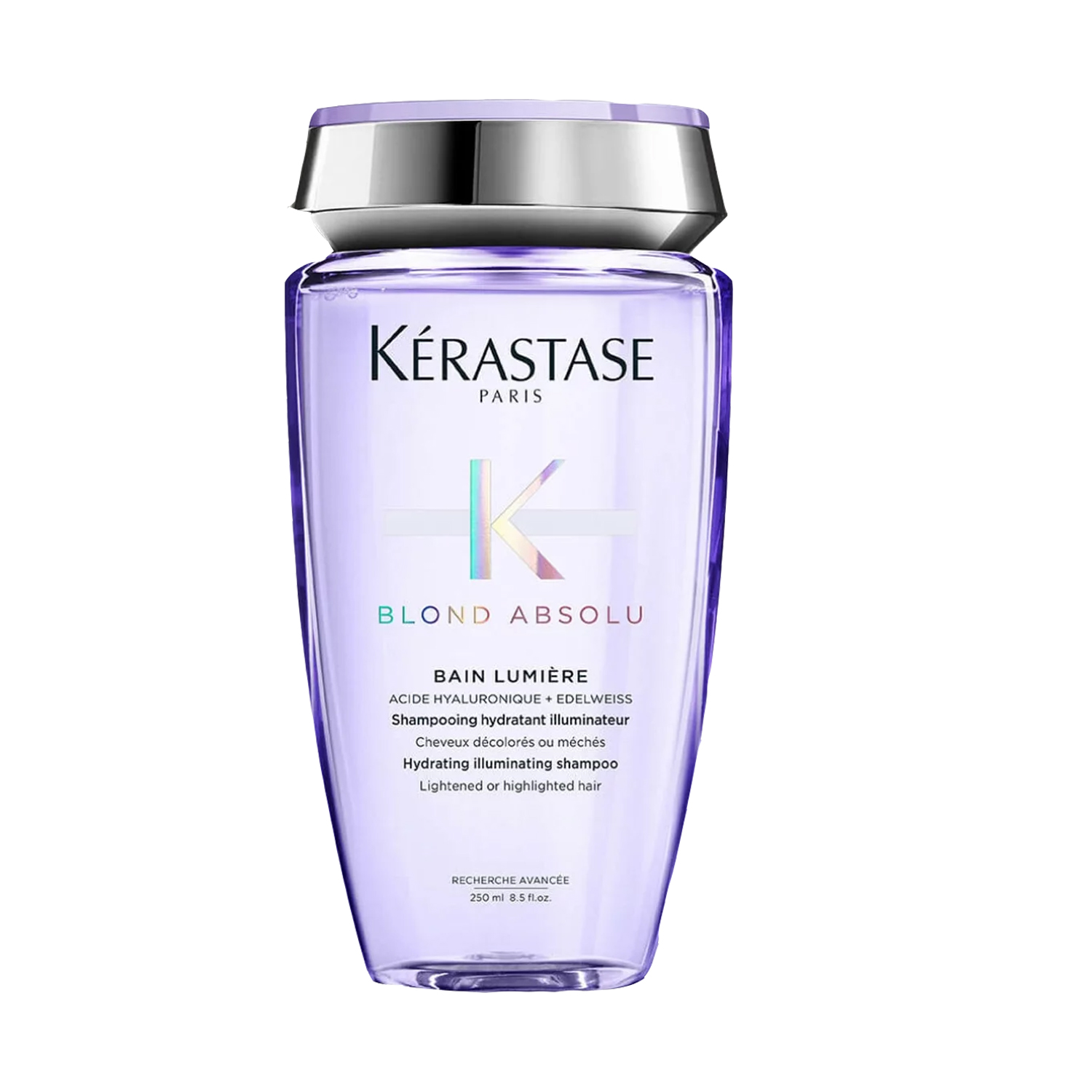 $49.19KERASTASE BLOND ABSOLU BAIN LUMIERE Hydrating Illuminating Shampoo Size: 1000ml / 34fl.oz. Kerastase Blond Absolu Bain Lumiere is designed for bleached, highlighted or grey hair. This lightweight and gentle cleansing formula purifies hair from pollution, removes excess oil and impurities while soothing and hydrating hair from root to tip. Kerastase Blond Absolu Bain Lumiere Shampoo consist of hydrating blend of Hyaluronic Acid and Edelweiss flower, a powerful antioxidant that replenishes hair with vital moisture and prevents damage to hair fiber. The shampoo delivers astonishing effects by brightening and boosting blonde tones for a vibrant, radiant and healthy-looking finish. While combined with Cicaflash fortifying treatment, will leave your hair 11x more resistant to breakage!