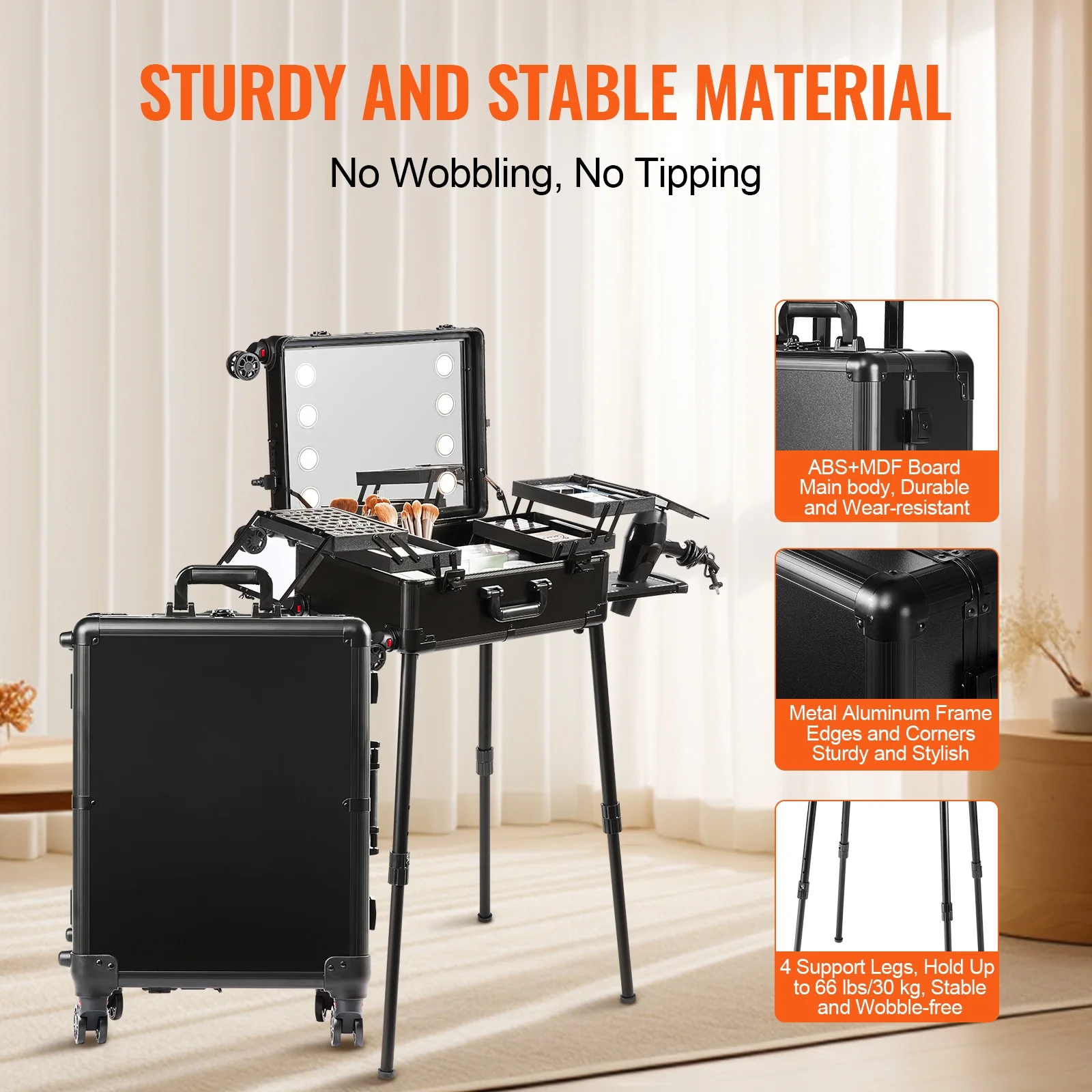 KFFKFF Professional Rolling Makeup Train Case Cosmetic Storage Free Standing